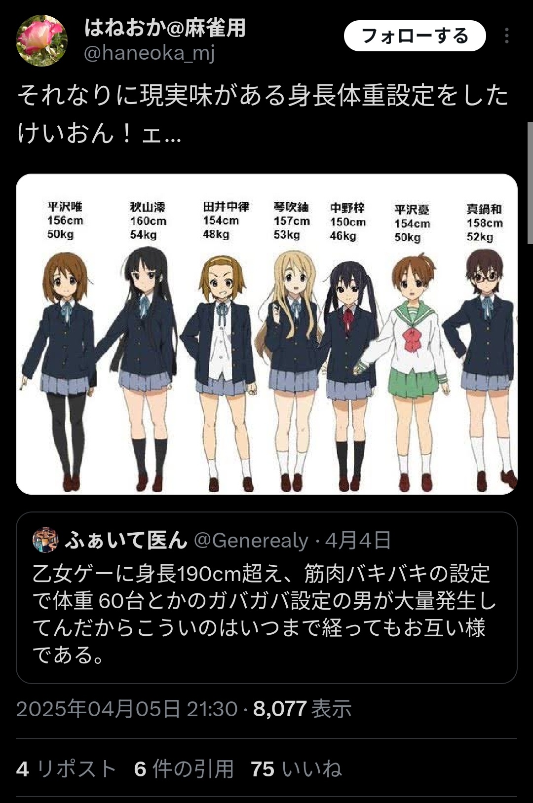 けいおんの体重はリアルとか言ってるやつ全員童貞説