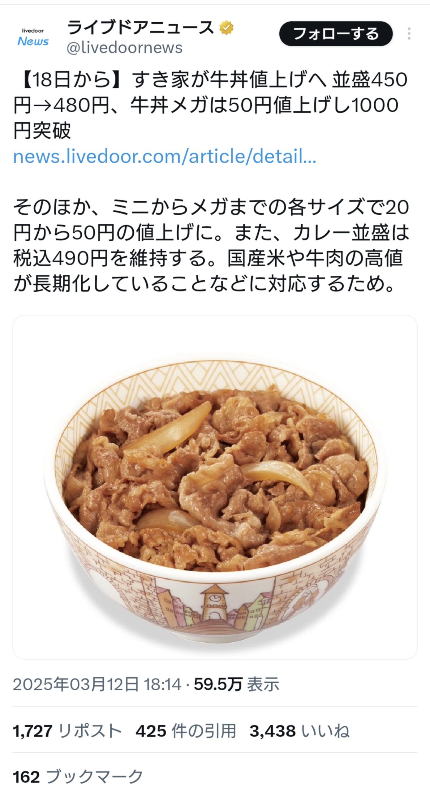 にしても牛丼屋関係は月の中旬でよく発表するね