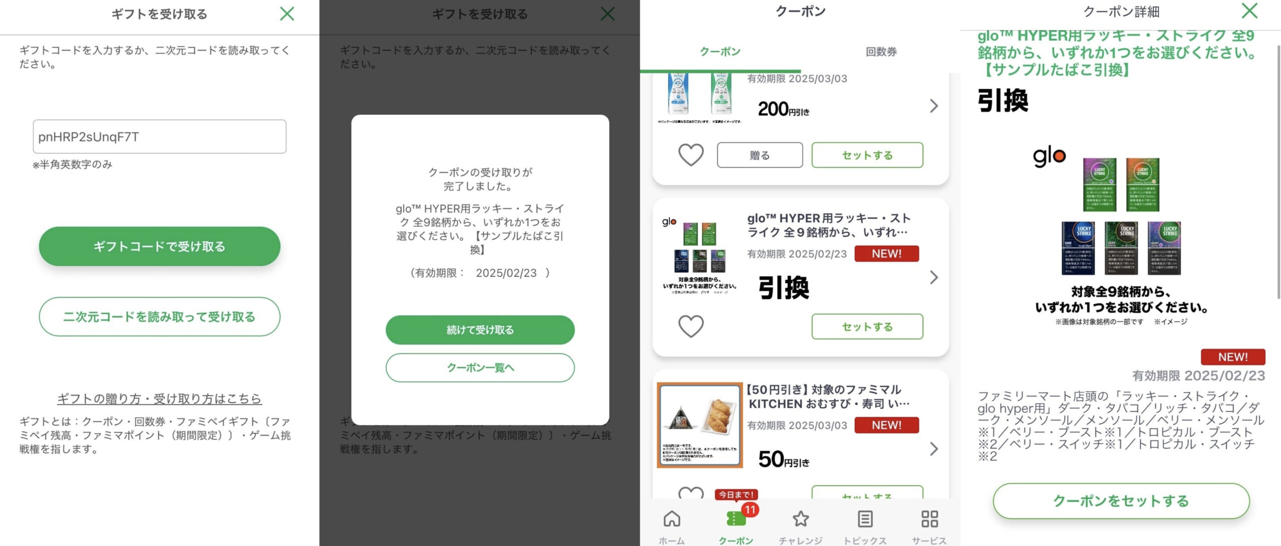 >>1【23日まで】ファミマのアプリでgloハイパーのラッキーストライク9銘柄からひとつ貰えるぞ