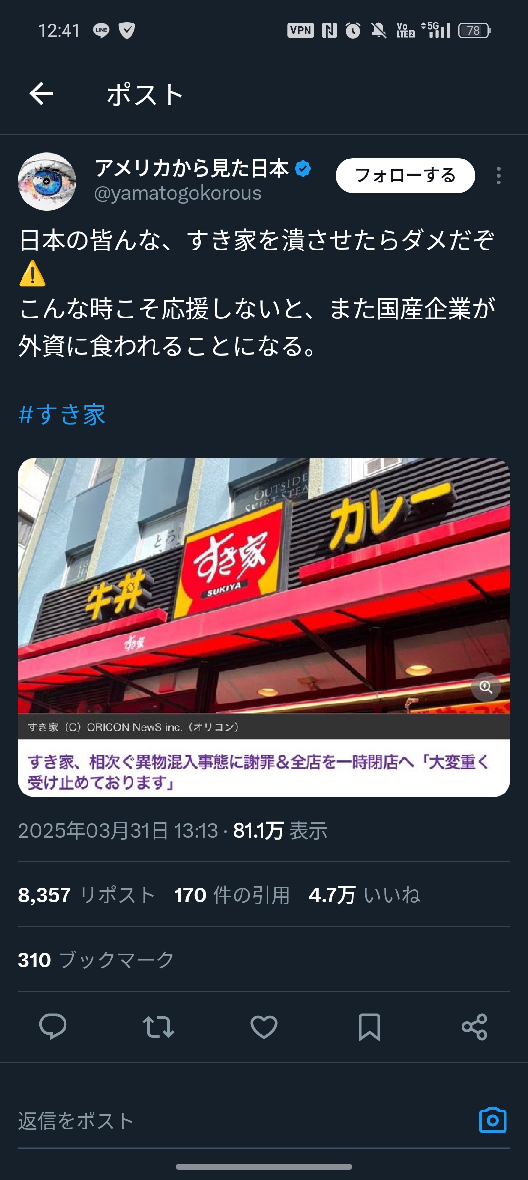 すき家なんて本気で業務してる奴なんていないし気付かない事が無いとはならない。ネトウヨは全て希望的。たけりゅシンヤブタエモン同様。