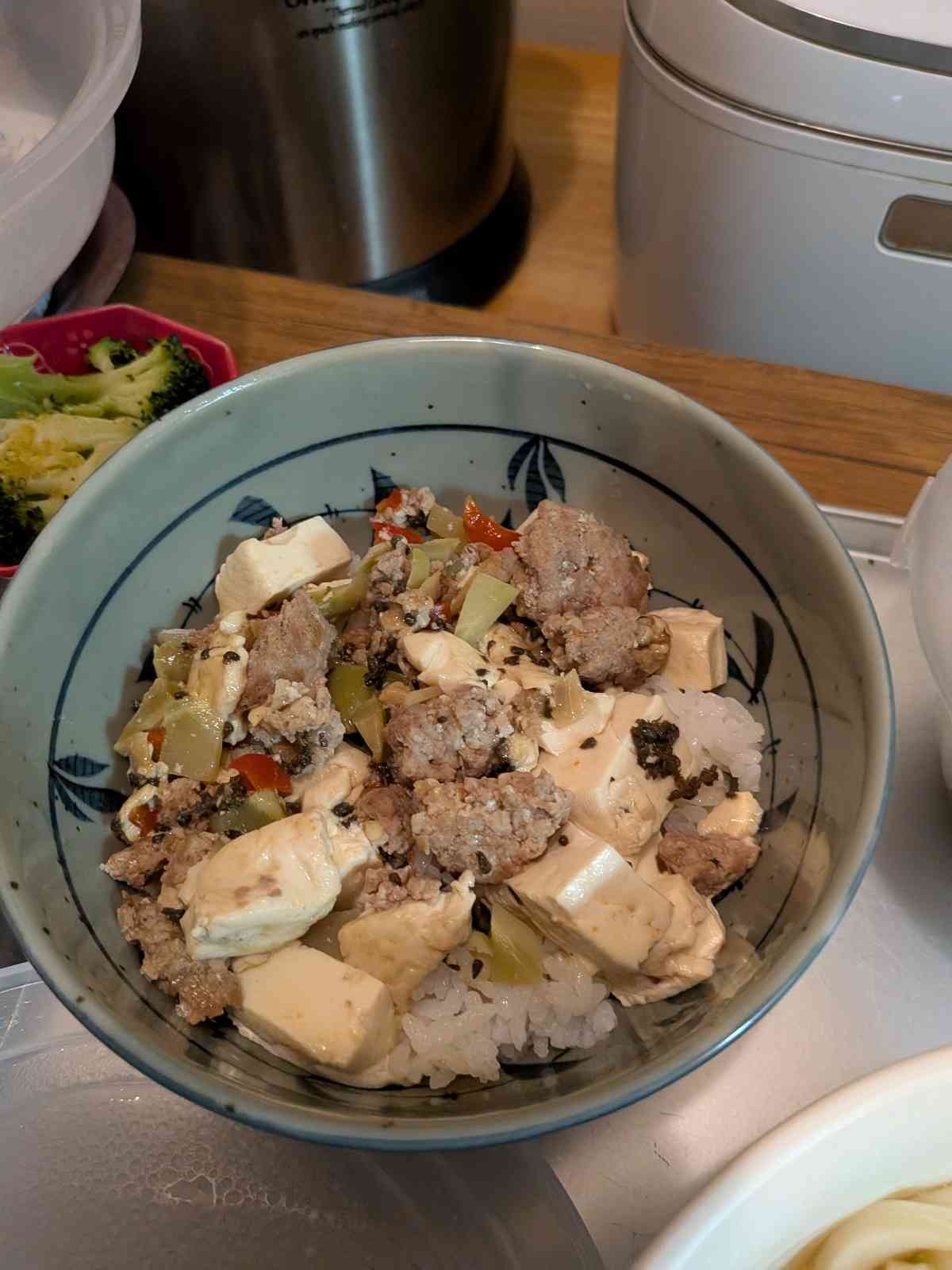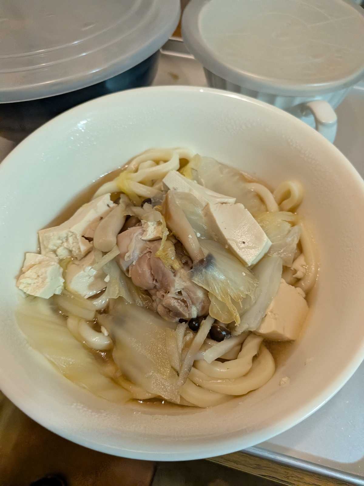 うどん、鶏肉、豆腐、白菜、しめじのご飯がたまりませんでした