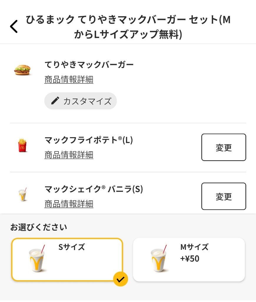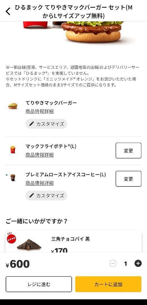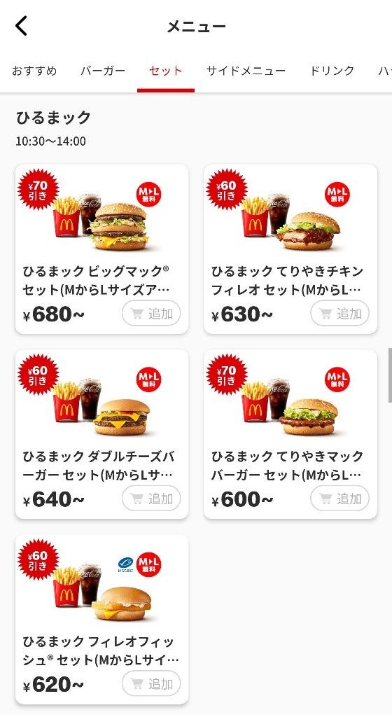 ひるマックLサイズアップ無料