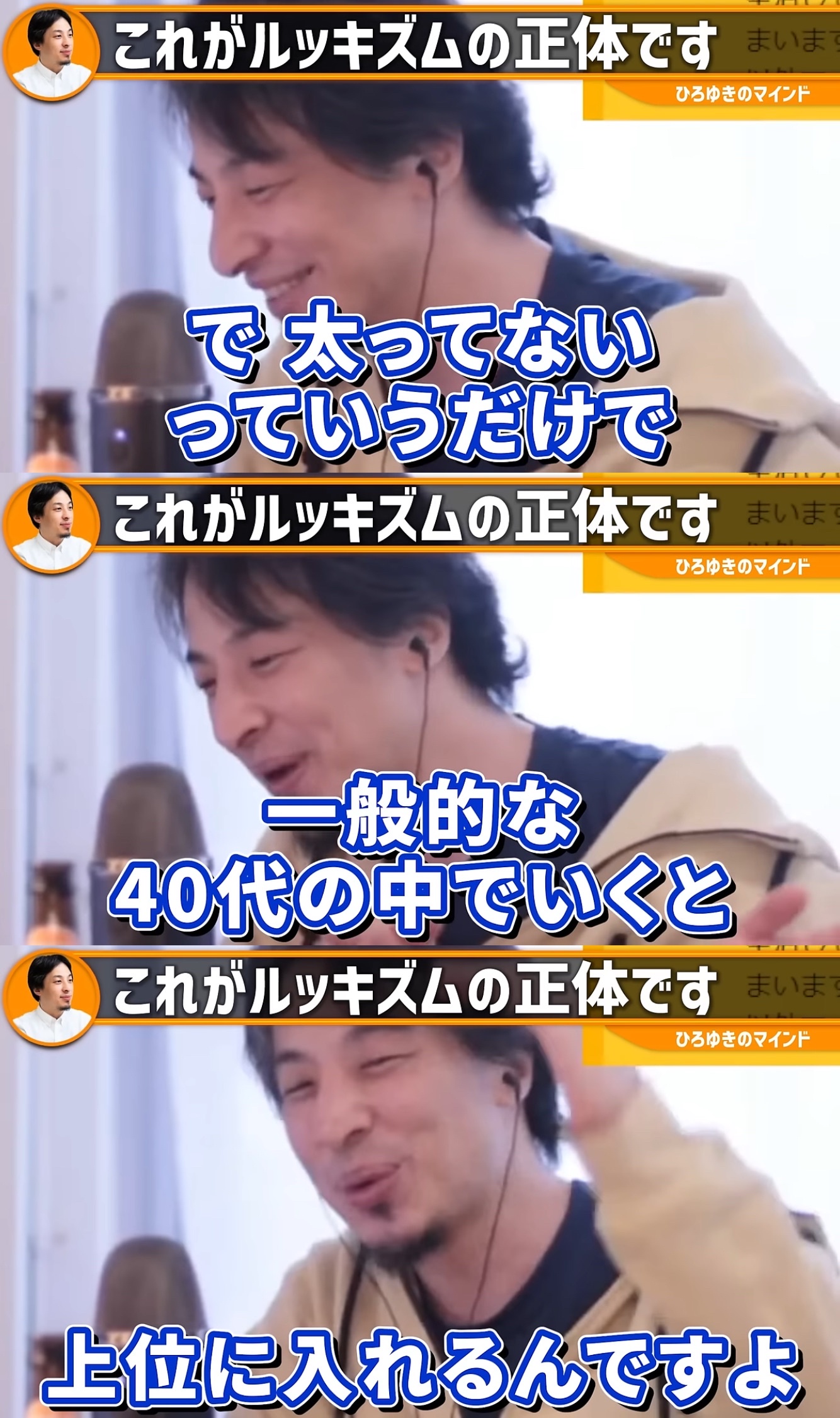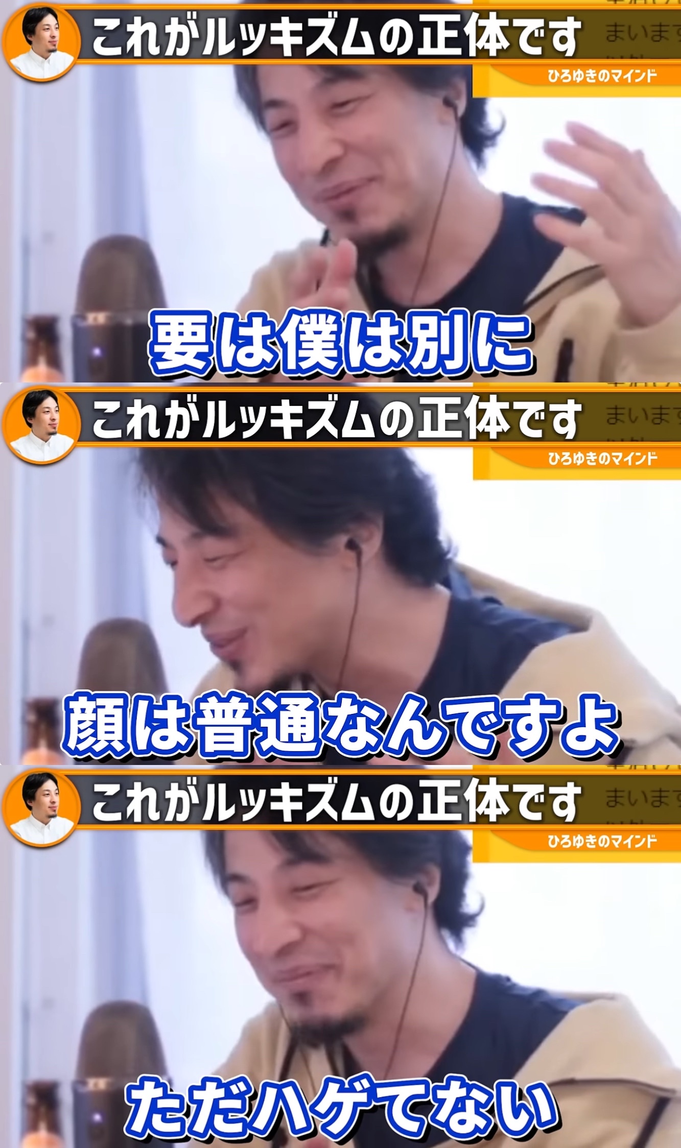 ひろゆき「僕は顔は普通なんですよ。でもハゲてない、痩せてるというだけで40代の中で上位に入れる」