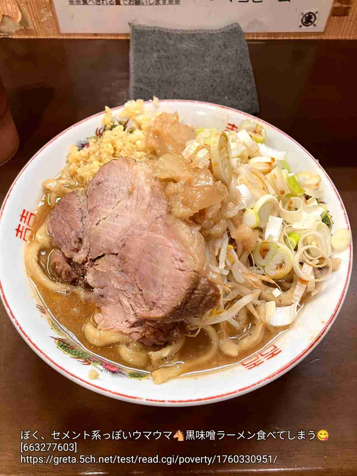 ぼく、セメント系っぽいウマウマ🐴黒味噌ラーメン食べてしまう😋