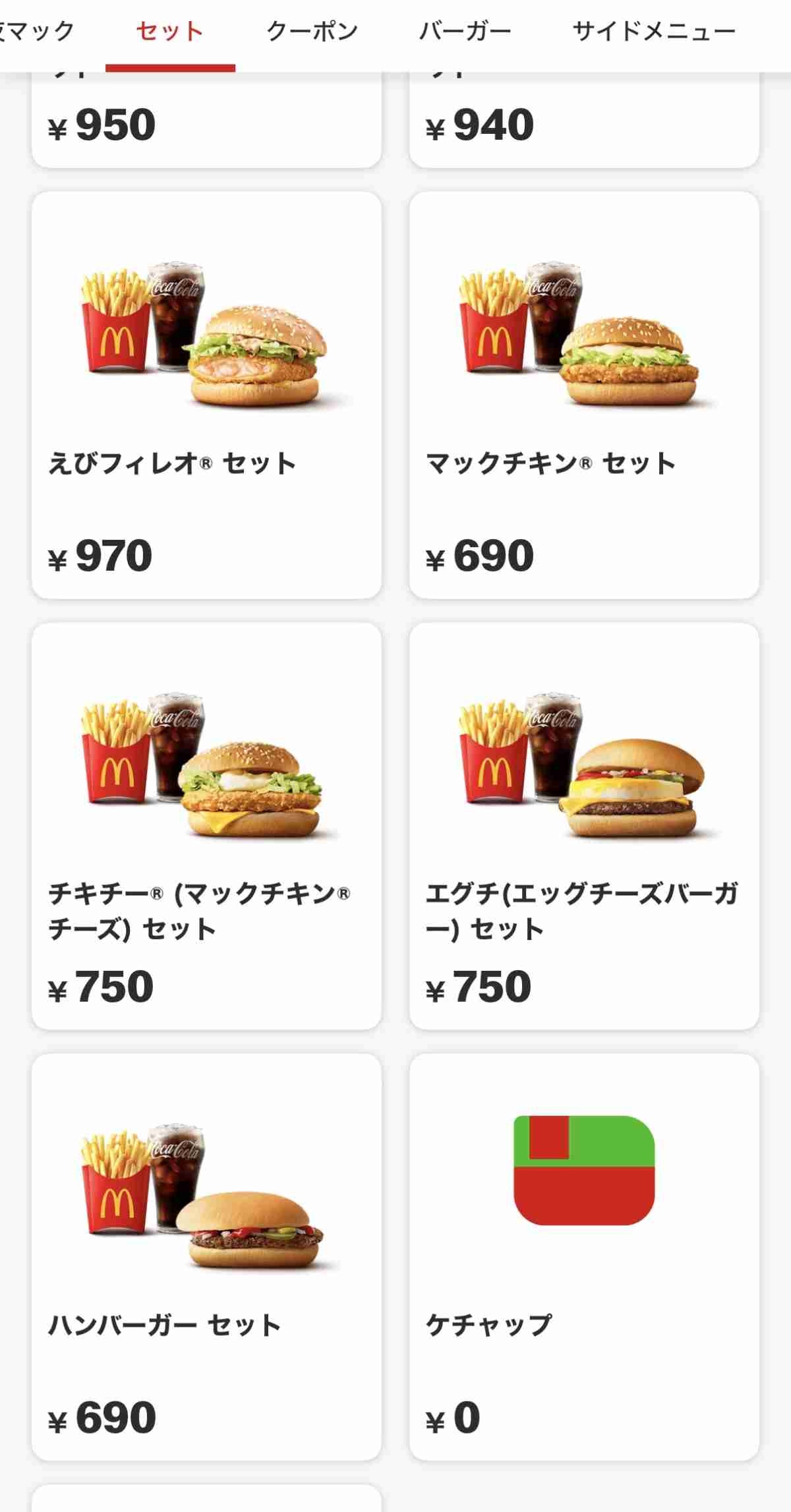 (ハンバーガー、マックチキン、マックポーク)+ポテトMプラドリンクMのセットは五百円だよ
