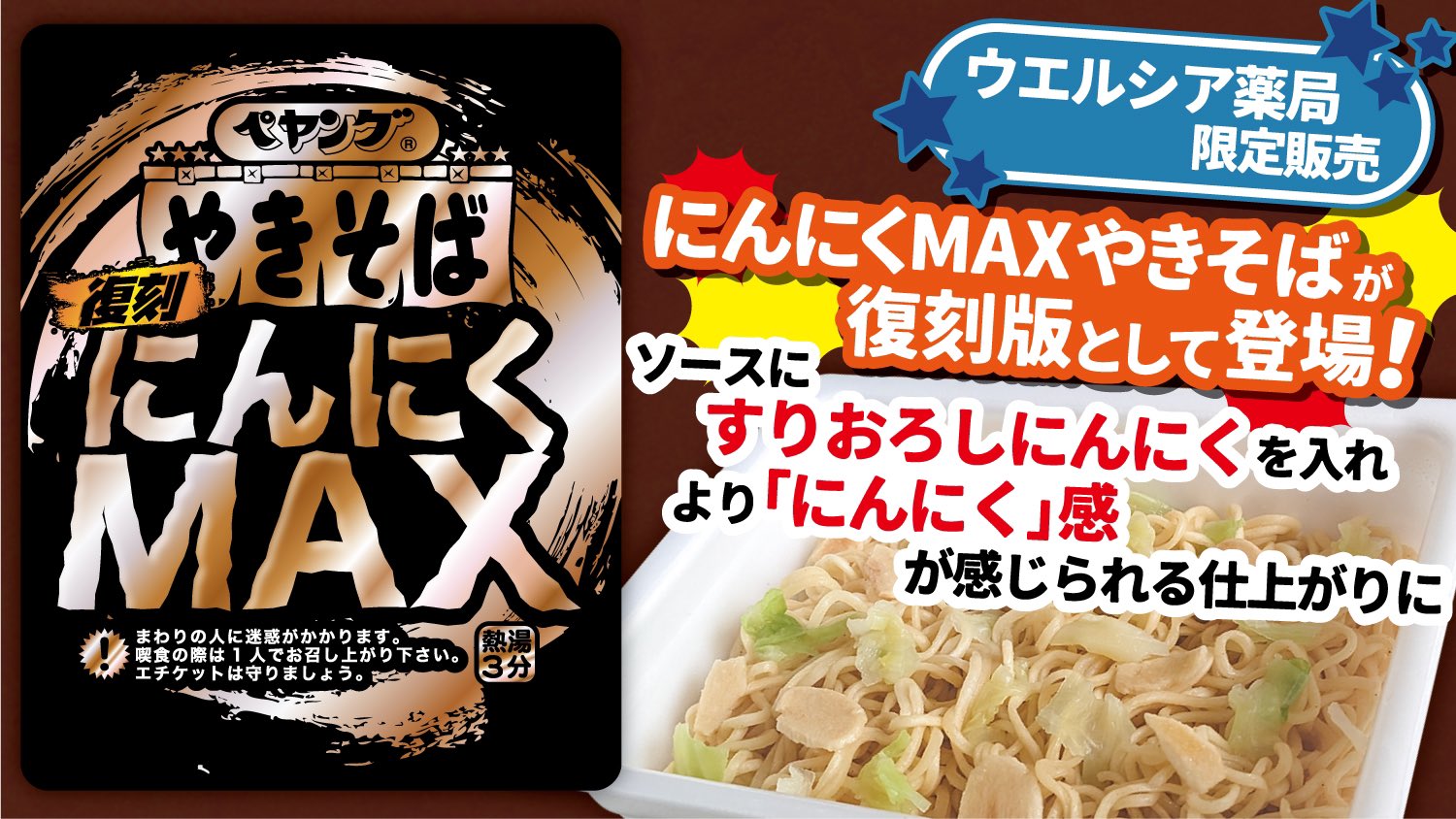 2015年に発売し大変ご好評いただいた「にんにくMAXやきそば」を復刻版として発売致します。