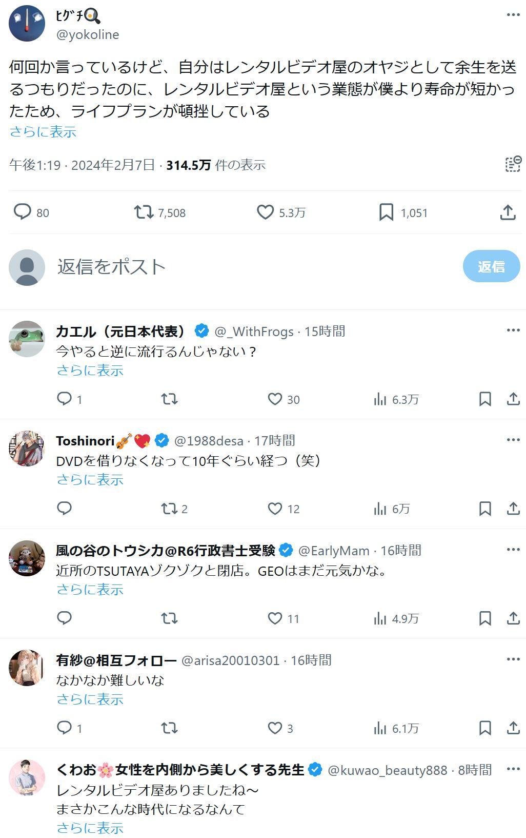 ゲオなんかは中古屋みたいな別の事業柱作って乗り越えたって感じやけど個人経営の店はどうなんやろな
