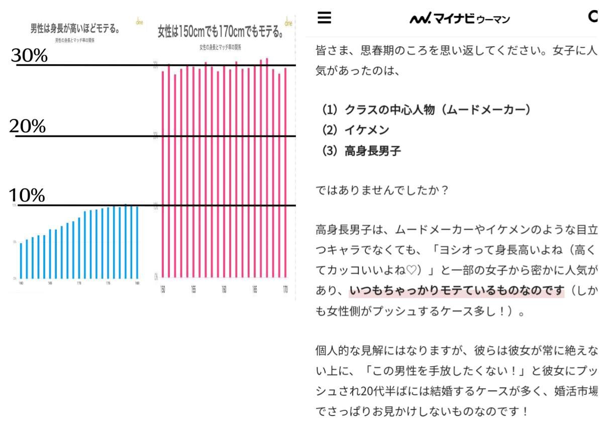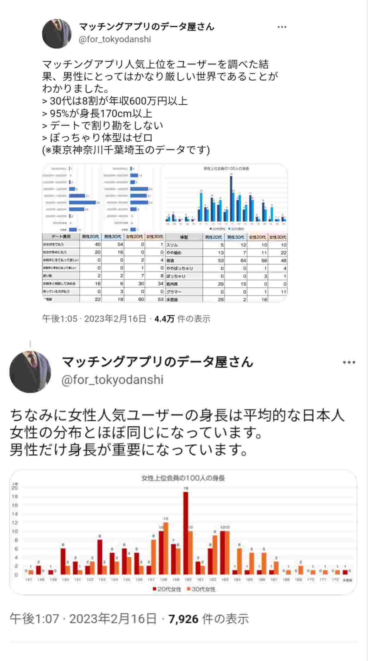 「男性は身長が高いほどモテる。女性は150cmでも170cmでもモテる」マッチングアプリがガチで証明してしまう