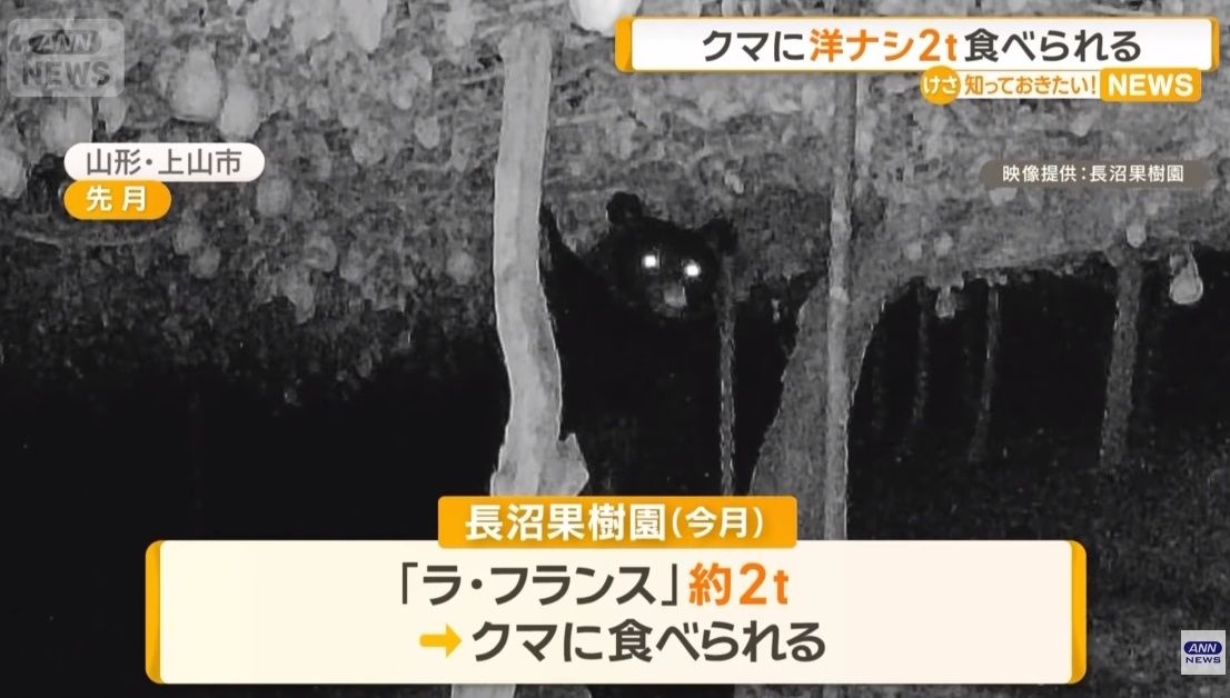 山形・上山市でクマにラ・フランス2トン食べられる 東北でブドウや柿も被害