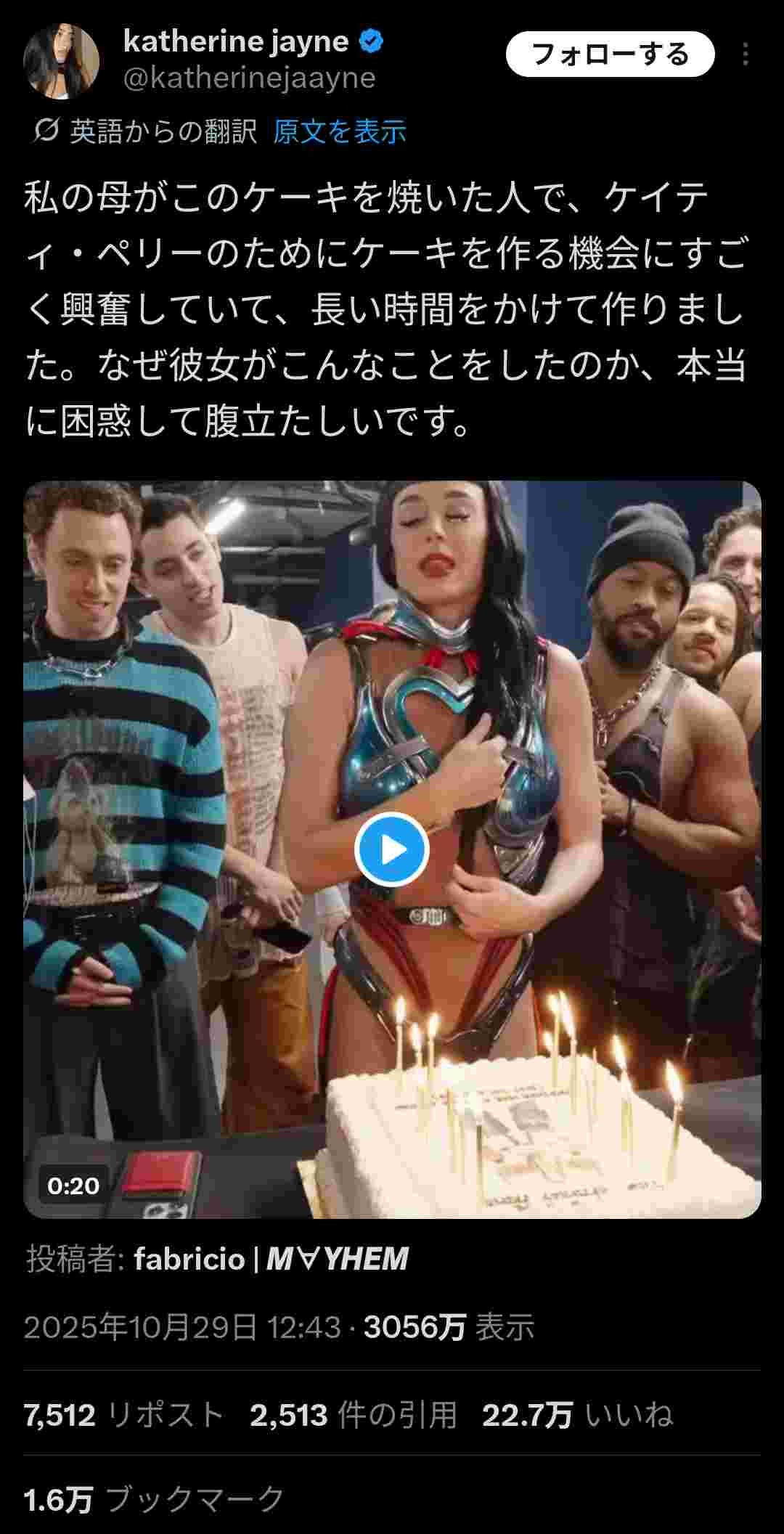 ケイティ・ペリーさん、誕生日ケーキをスタッフの顔面に投げ捨て大炎上…ケーキ職人の娘は動画を見て号泣www