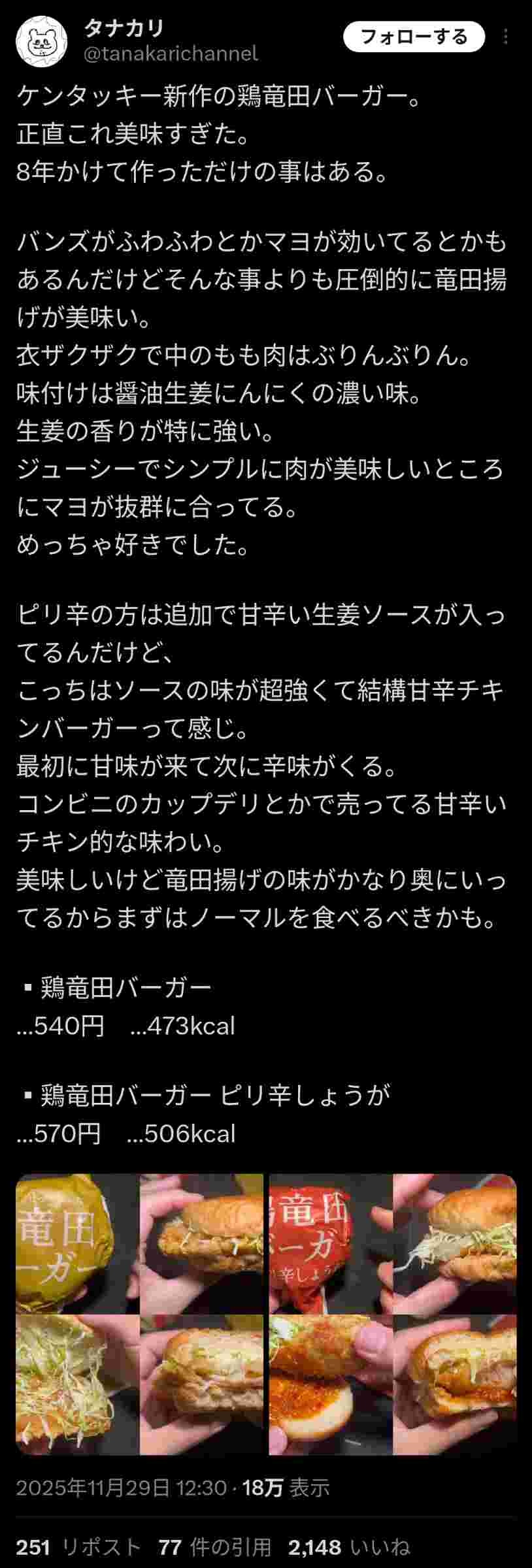 つかさー、話題にのぼったから気になってクーポン見てもカスだし値段見たらバーガーだけで580円、飲み物ポテトつけたら950円、ケンタは店に行くまでの動線が無いんだよな