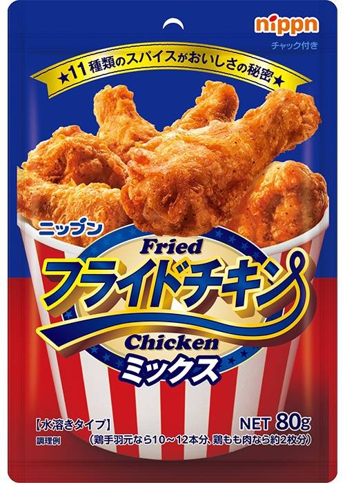 ニップン フライドチキンミックス 80g|商品情報|株式会社ニップン11種類の香辛料が香るスパイシーなおいしさ。カリッとジューシーなフライドチキンがご家庭で簡単に作れます。www.nippn.co.jp