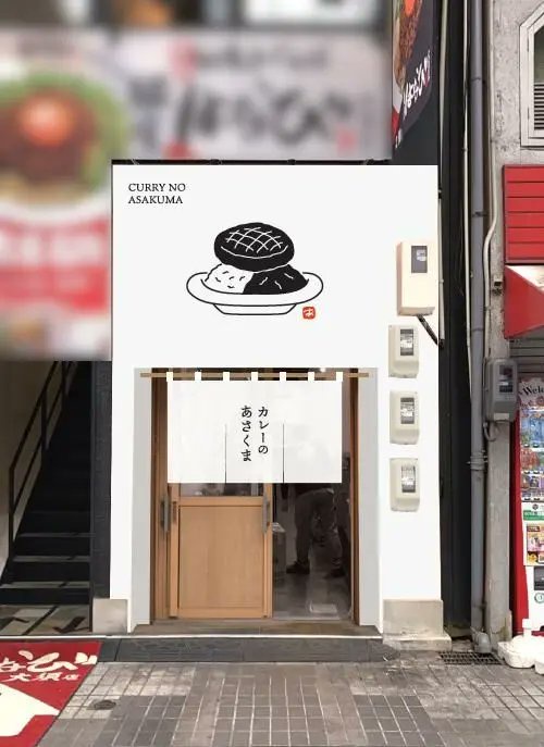 郊外型が主流のあさくまとは一線を画し、新店舗はカジュアルで入りやすい街中タイプ。手描き風のカレーアイコンが目を引く白い外観と、木の温もりを感じるカウンター中心の店内(31席)で世代を問わずふらりと立ち寄れる設計となっている。