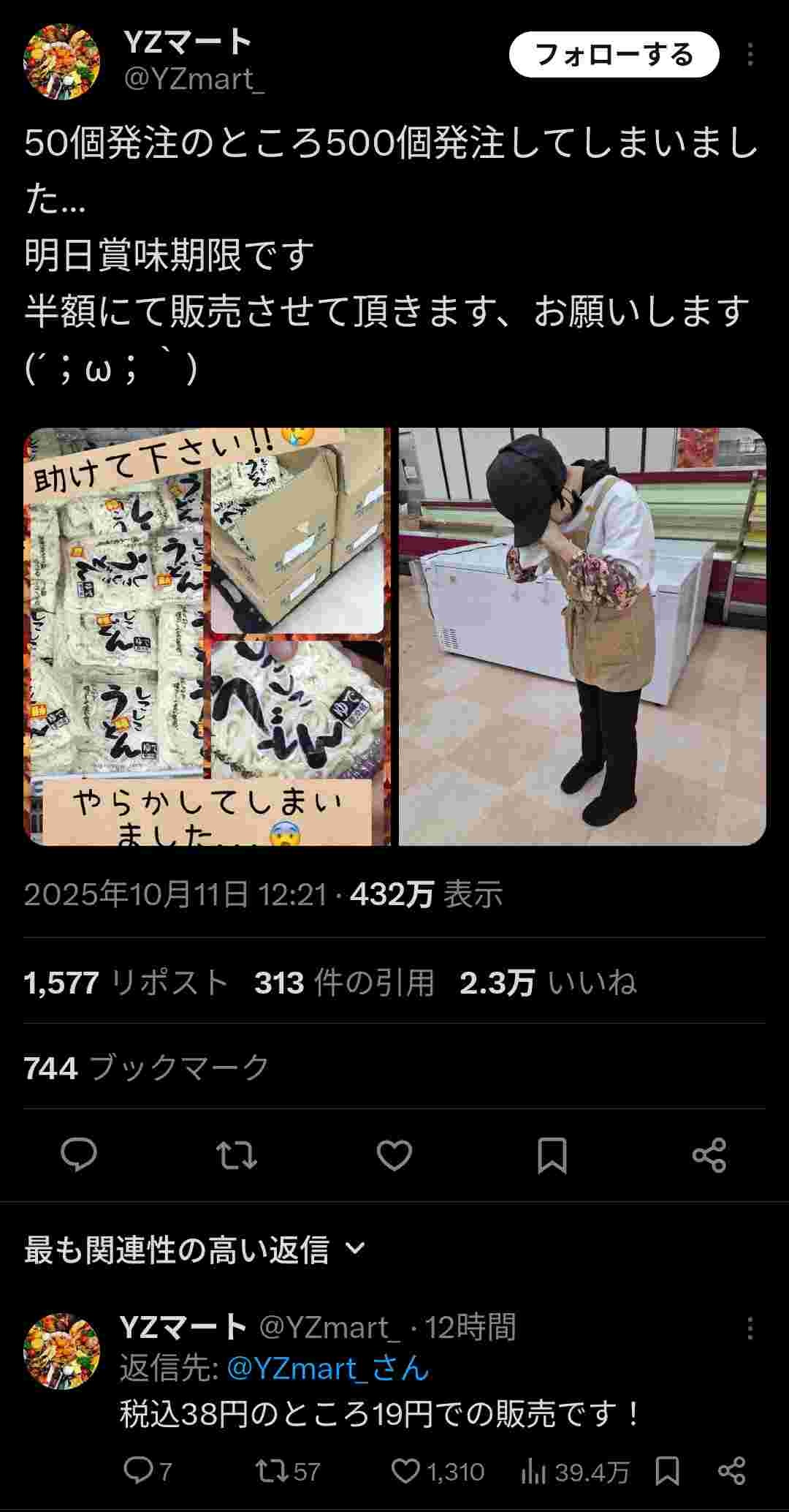 誤発注やけど頑張ったら売り捌けるやろなぁって考えて賞味期限切れ当日まで値引きしなかったんか?