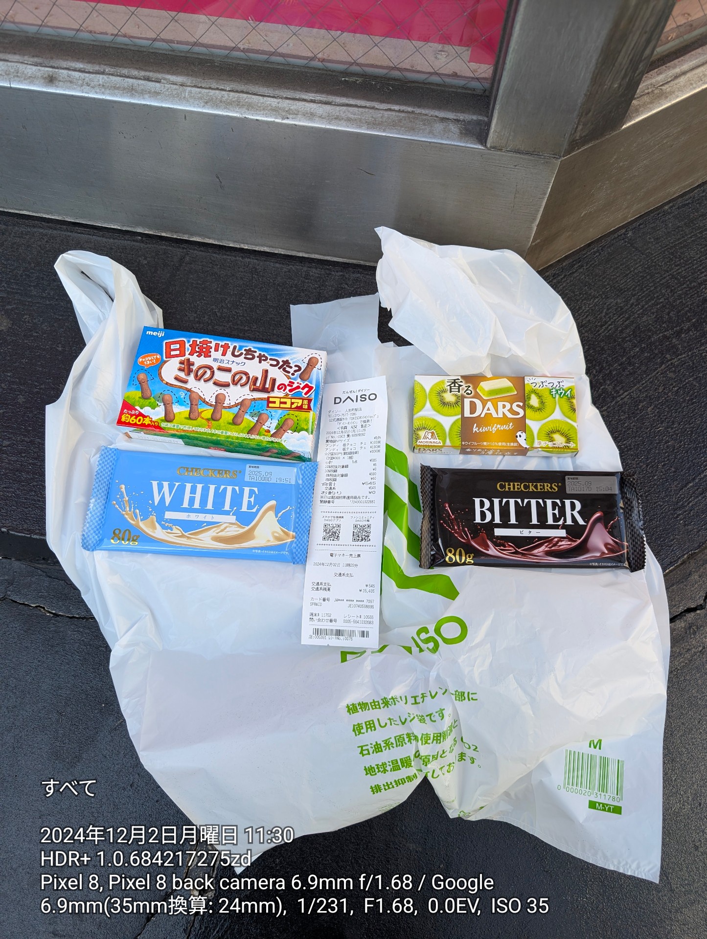 こんな町中で買った物を広げて写真撮ってるやついたら気持ち悪い