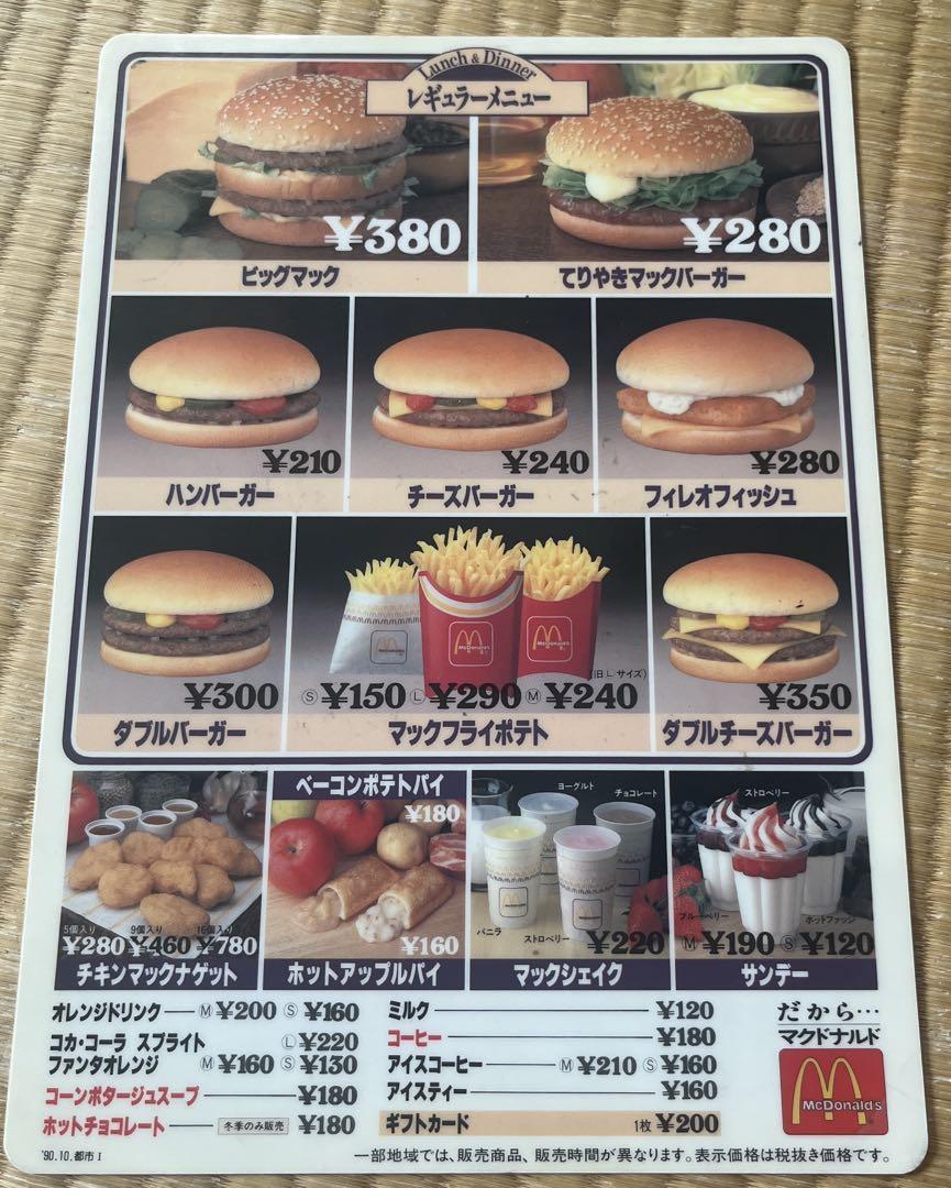 バブル期までならビッグマックに当然のことのように当時の貨幣価値で300円以上は出せたわけだから