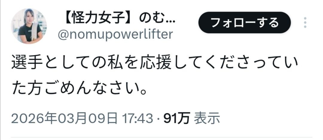 野村は9日に「選手としての私を応援してくださっていた方ごめんなさい」とつづっている。