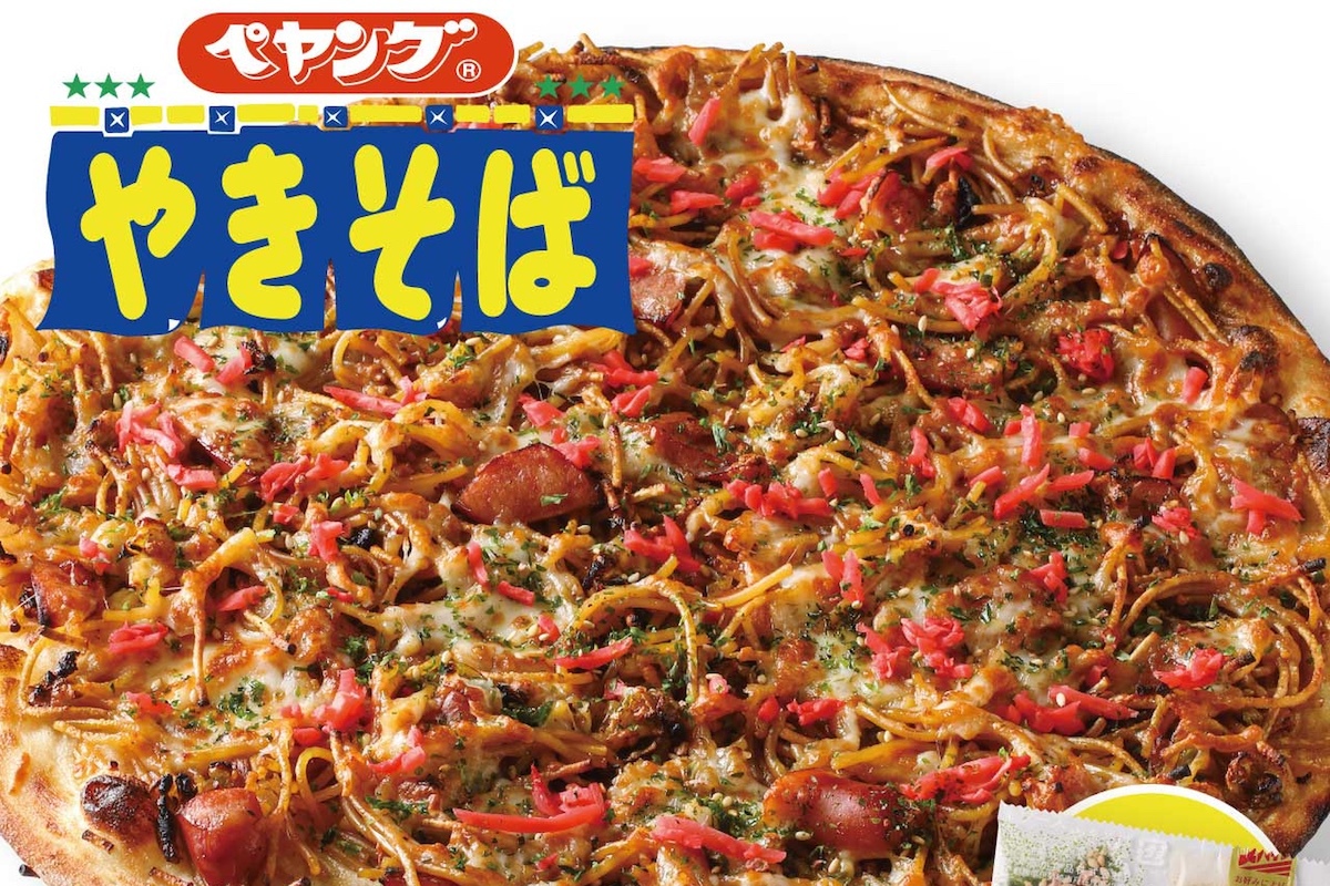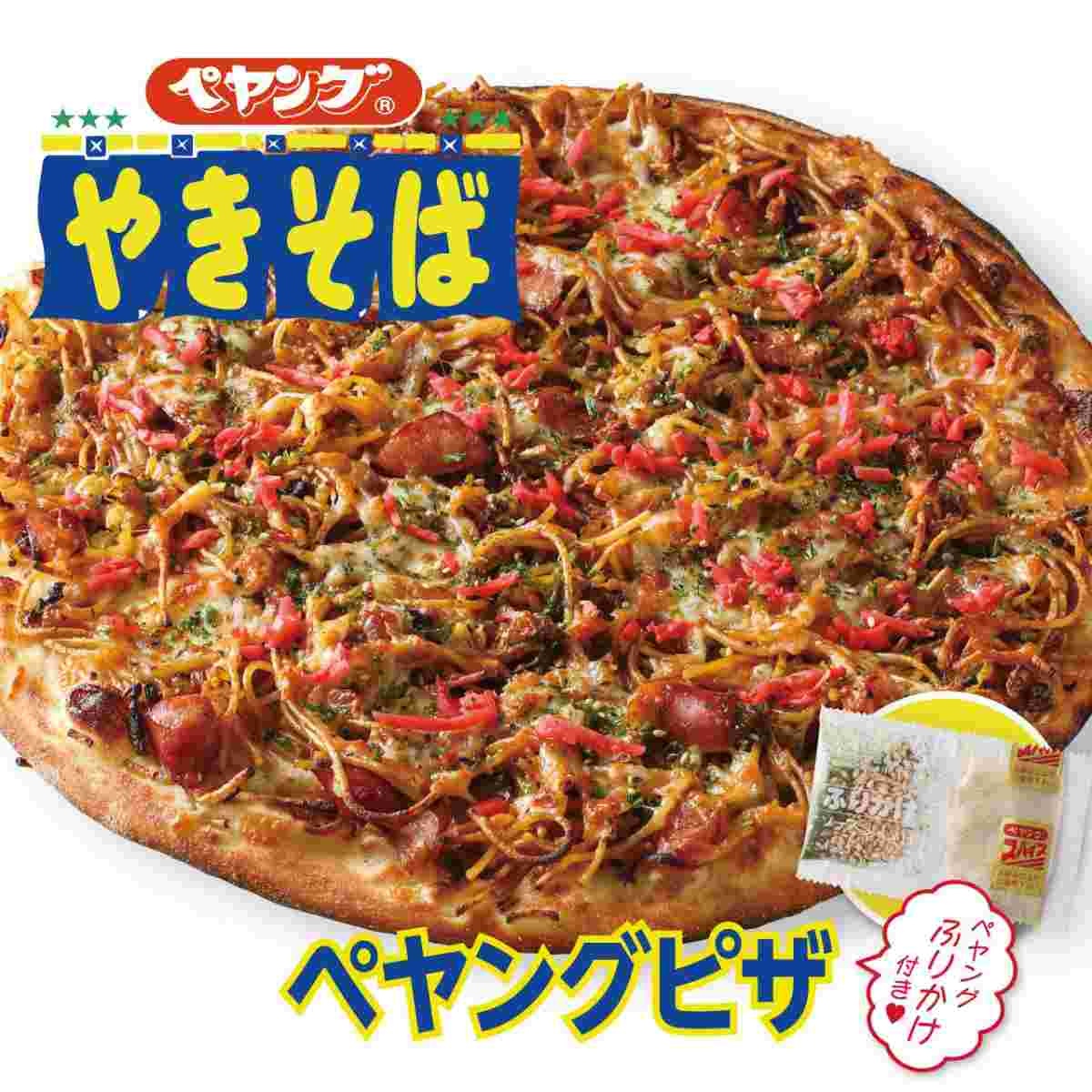 宅配ピザチェーンの「ナポリの窯」は、まるか食品のカップ焼そば「ペヤング」の食材を使用した「ペヤングピザ」と「激辛!ペヤングピザ」を4月14日より発売します。直径30cmのピザで価格は各3200円。