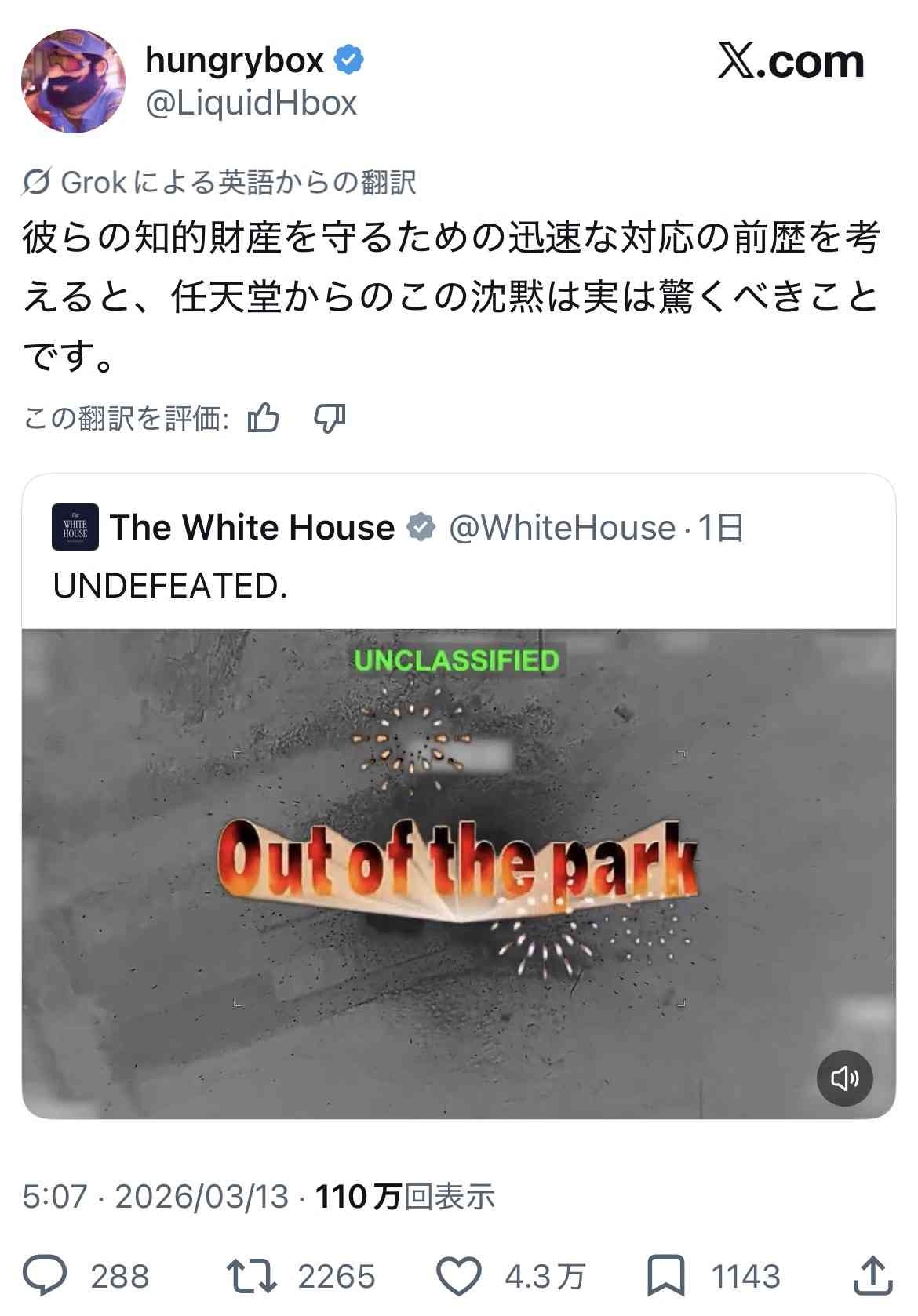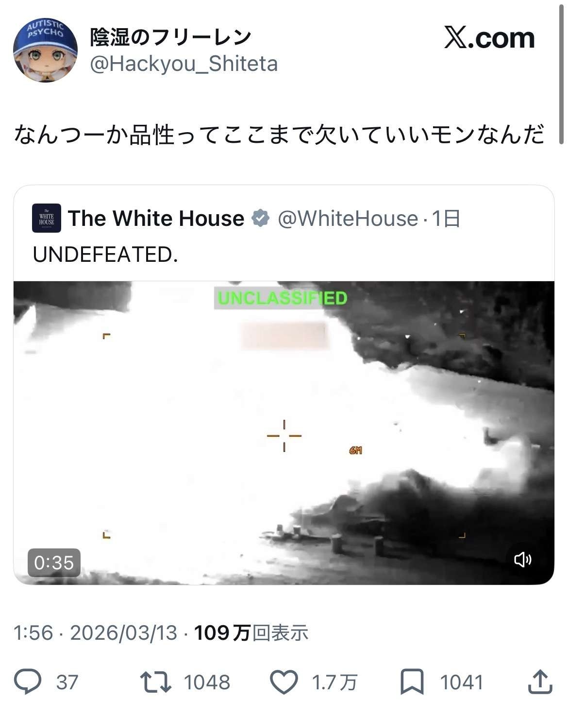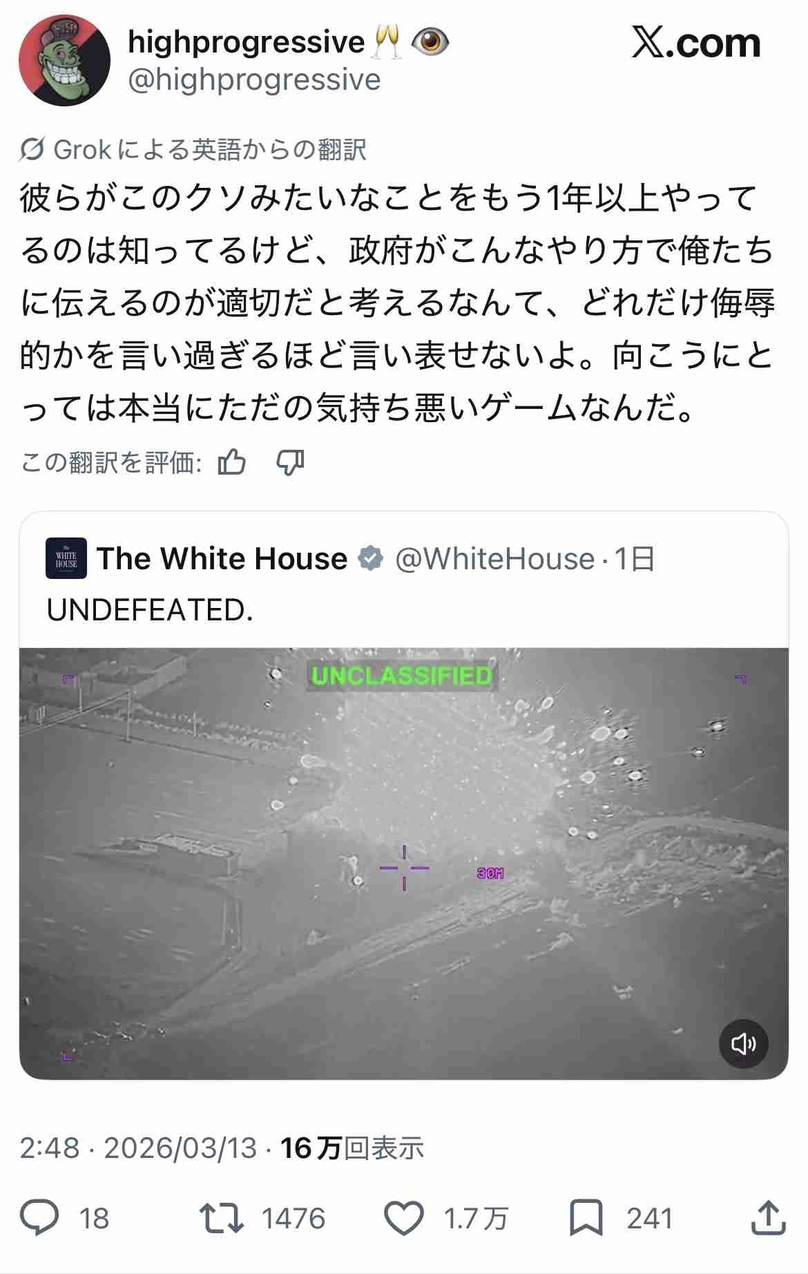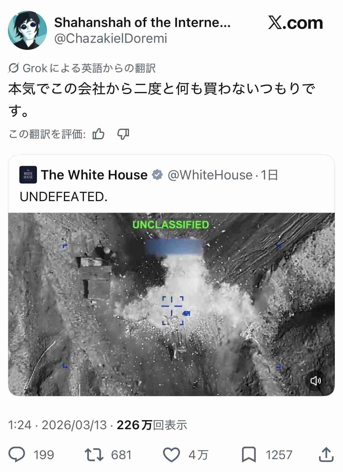 民主党が「これがトランプの戦争です」てやったら馬鹿にするなと大炎上だろうけど、まさかホワイトハウスが自らやるとは