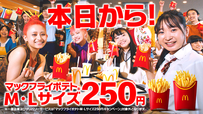 マクドナルド(マナル)、今日からポテトM・Lサイズ250円で販売開始。誰がM買うんだよ