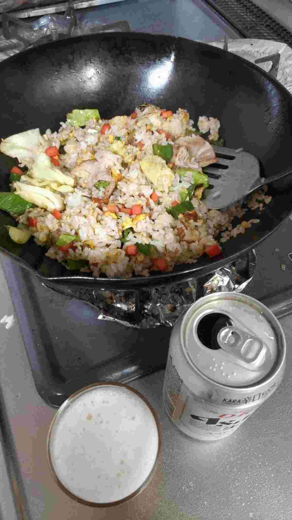 チャーハンにキャベツとピーマンは無いな…鶏肉もでかすぎだし
