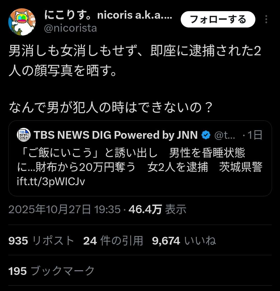ちなみにXでは女だとすぐ顔出すんだねと記事が炎上中