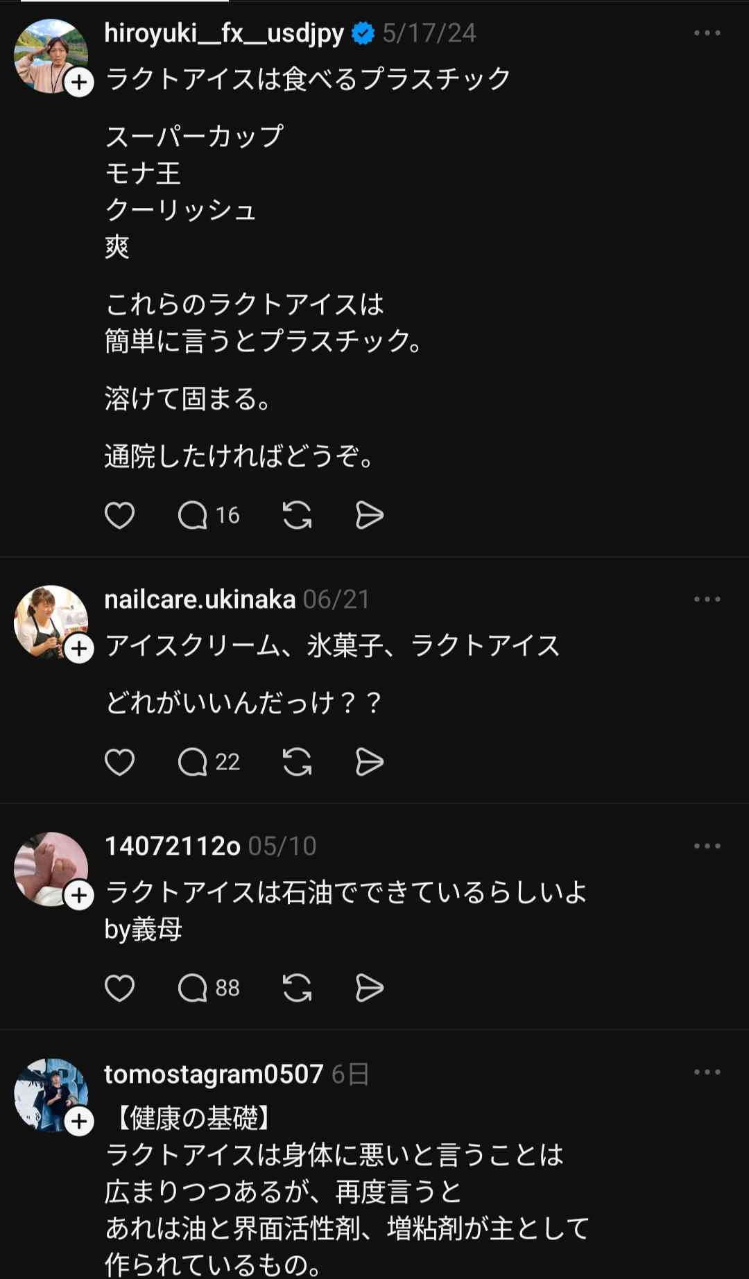 昔は親の敵のようにラクトアイス叩いてたのに加齢で乳脂肪受け付けなくなったから優しくなった老害モメン