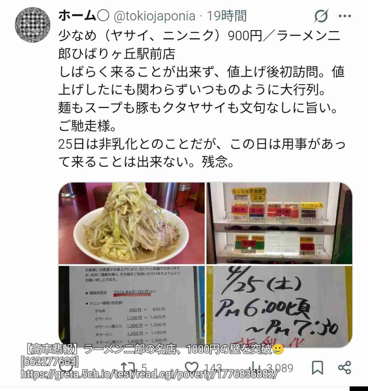 もっと値上げしてひばりの行列を短くするべきだよな、1.5倍にしろ