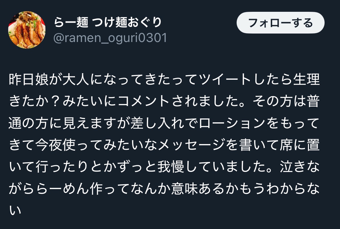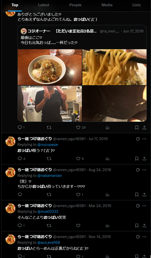 ラーメン屋の女性店長「おぱーい吸う?等のつぶやきに対してセクハラまがいの反応が来るのがずっと嫌でした」 どうすりゃ良かったんだよ