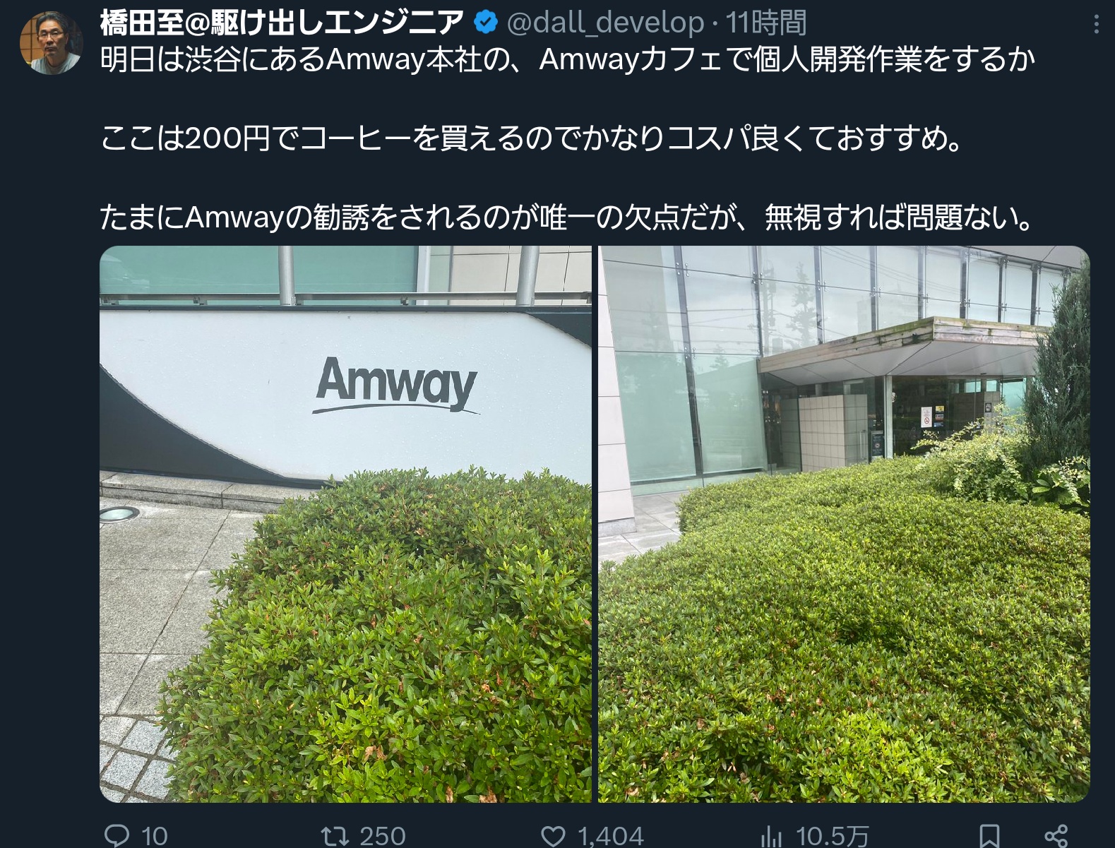 (ヽ´ん`)「渋谷に来たらアムウェイの本社カフェで過ごしてる。コーヒー200円で必ず座れる」