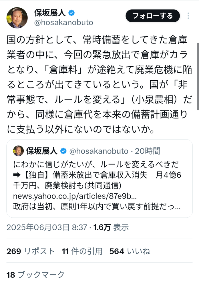 備蓄米が放出された後の事を想定してなかった倉庫業者が悪い