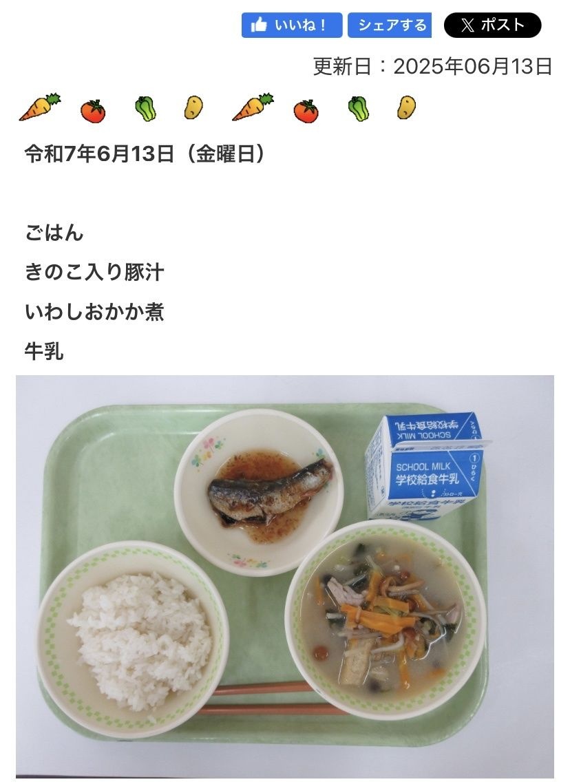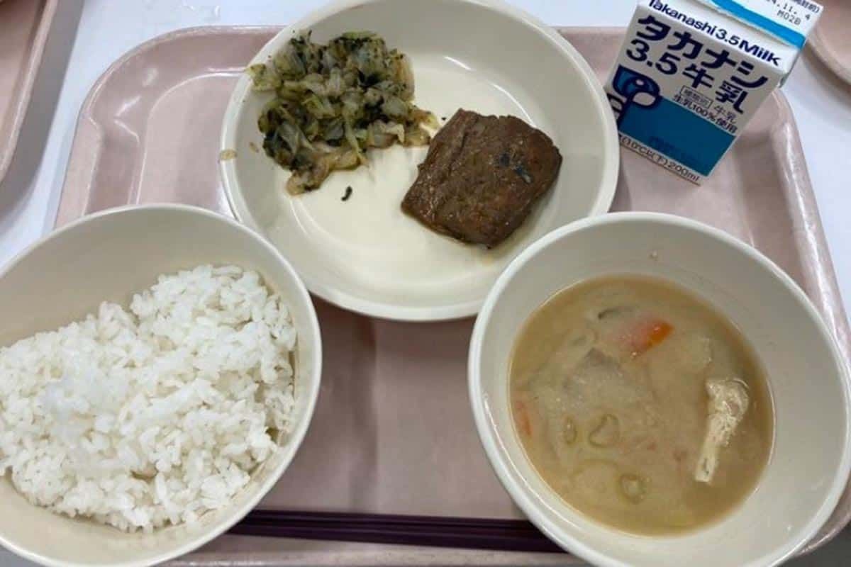 普段の給食献立を狭山市の公式サイトで確認すると、例えば12月12日は、小学校なら「牛乳、ごはん、やさいわん、たらのゆずしおこうじやき、きりぼしだいこんのごもくに」というラインナップ。中学校では「牛乳、きつねごはん、沢煮椀、ポテトコロッケ、大根のピリ辛漬け」と、それなりのメニューの数が並んでいる。
