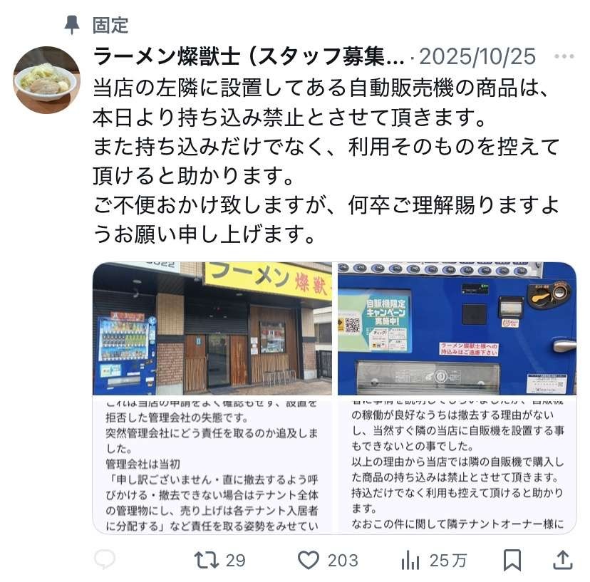 ラーメンの件に関してはまぁて感じだけど自販機の件に関してはゲェジやんけ