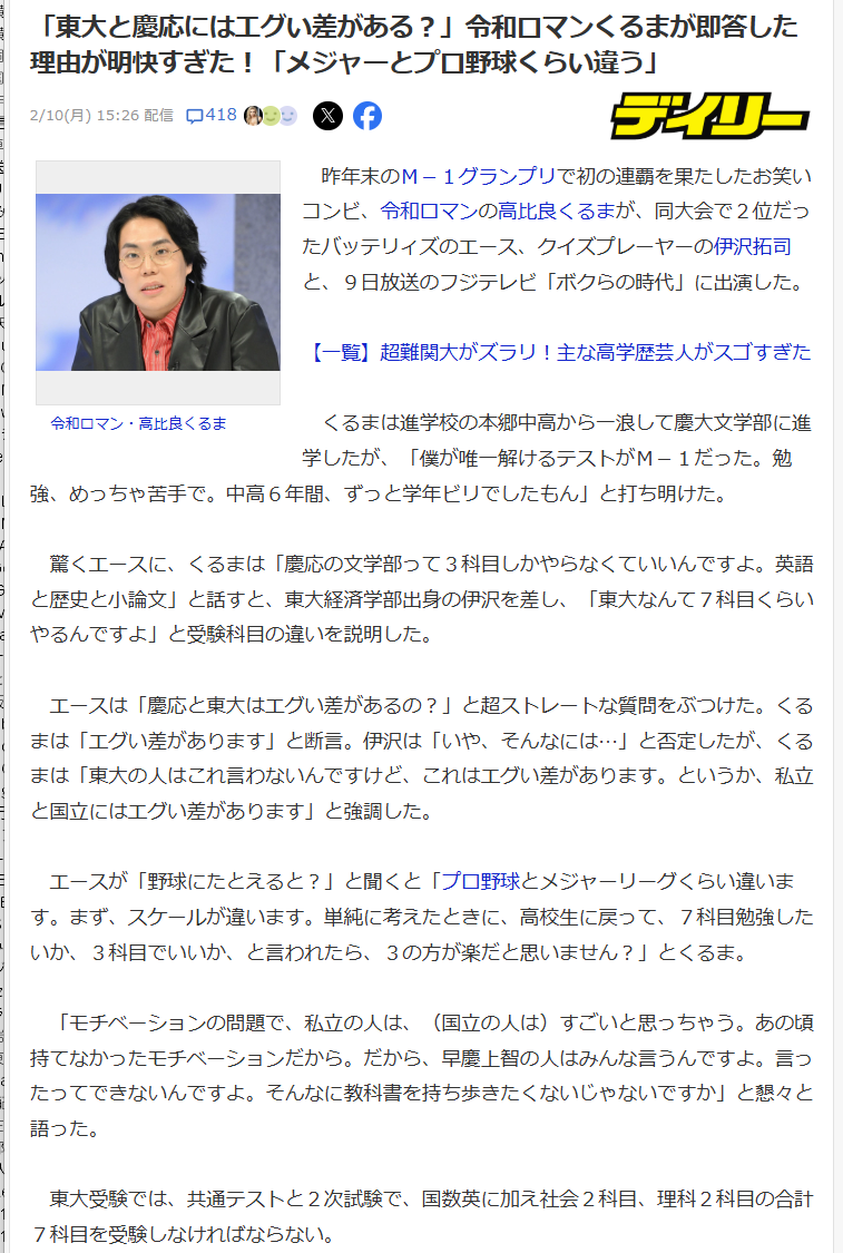 東大に一人も受からない高校でも慶應には学年40人くらい合格できるくらい歴然とした差がある