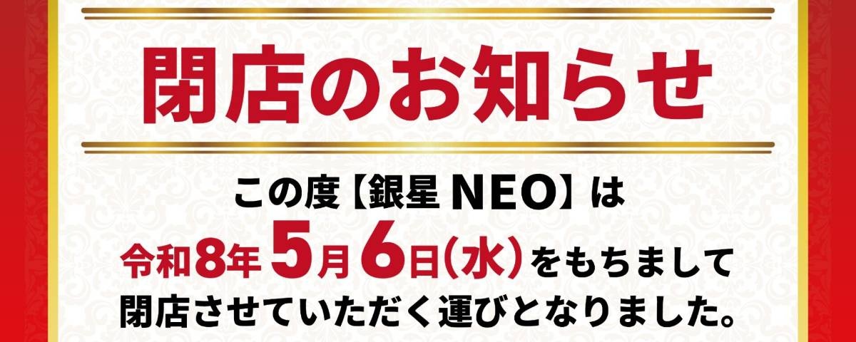 『銀星NEO』は2002年3月のオープン以来、約24年にわたり営業を続けてきたが、このたび閉店を決断した。