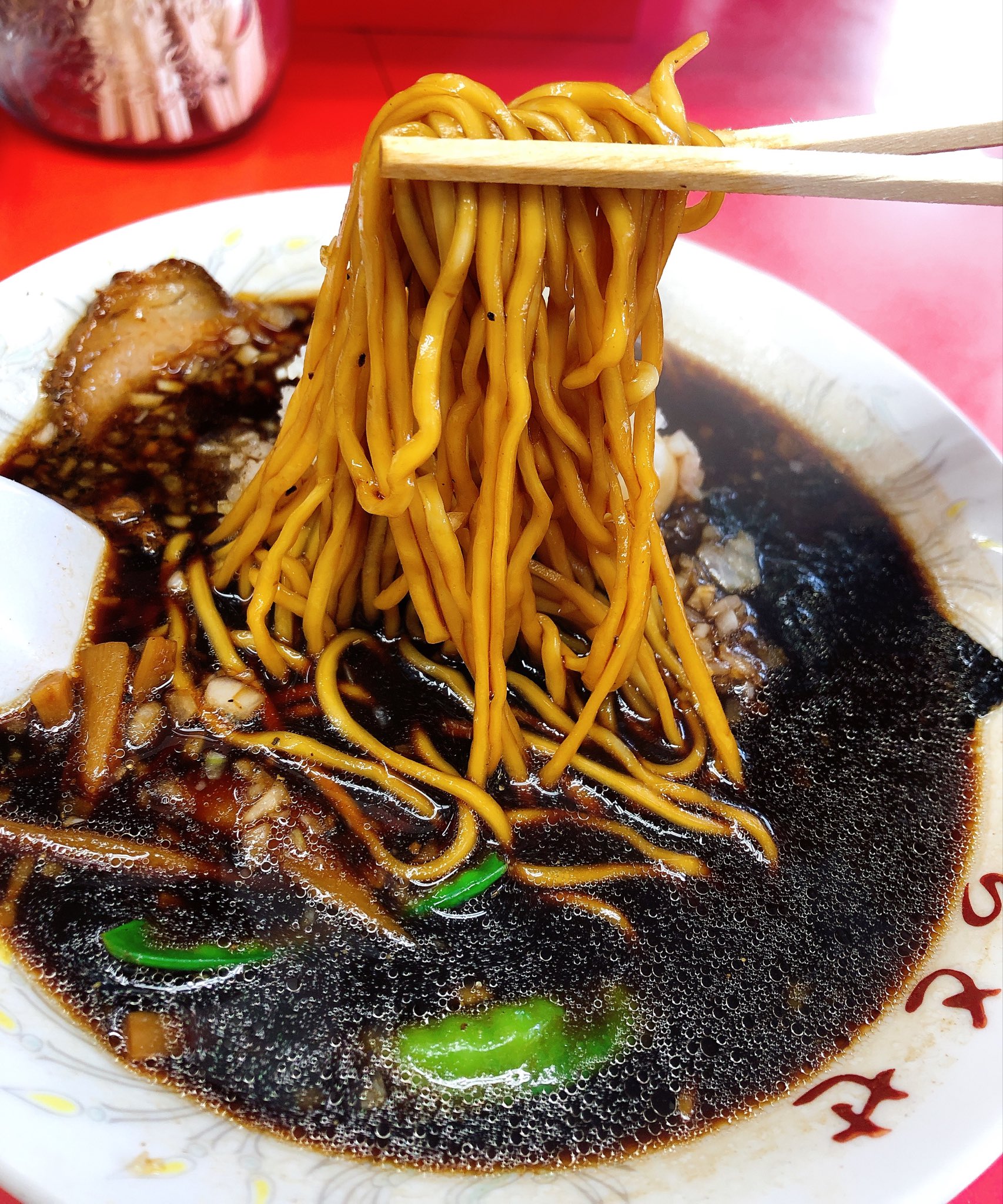 一応玉ねぎは見えるけど八王子ラーメンもっと普通のスープだよね