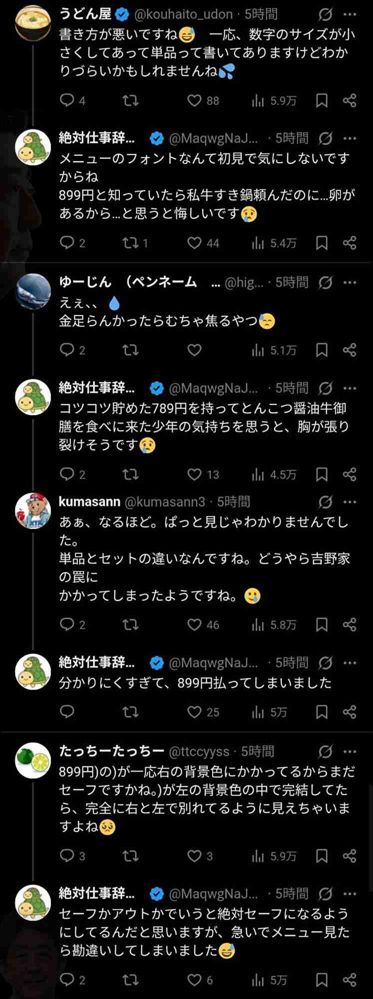 ワシは吉野家くらいならパッと見てサッと頼むから多分勘違いして泣き寝入りすると思うわ