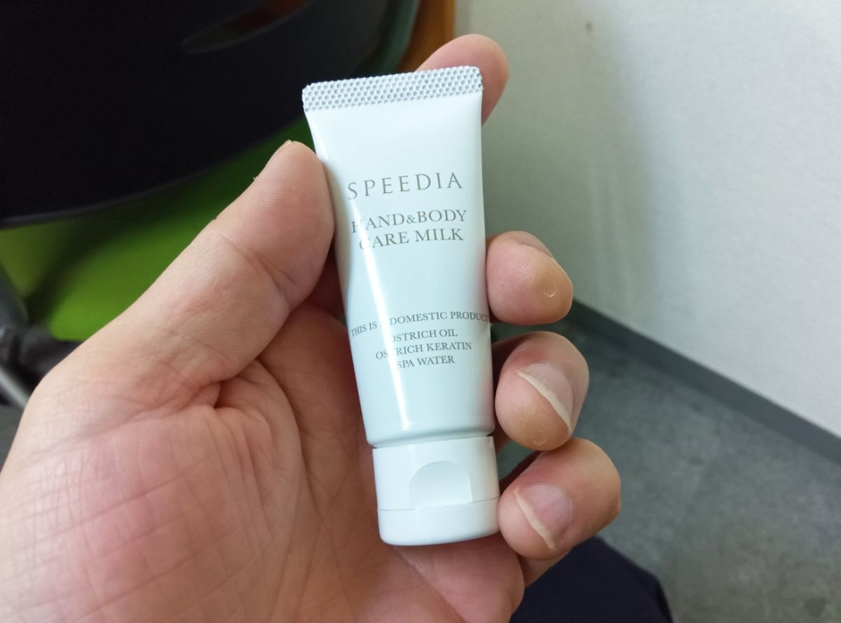 試しに、使ってみたところ、ハンド&ボディミルクはサラッとしていて全くベタつかない。まずその塗ってないような肌感覚にテンションが上がった。説明書によると、無香料・高保湿の国産オーストリッチオイル配合なのだそうな。