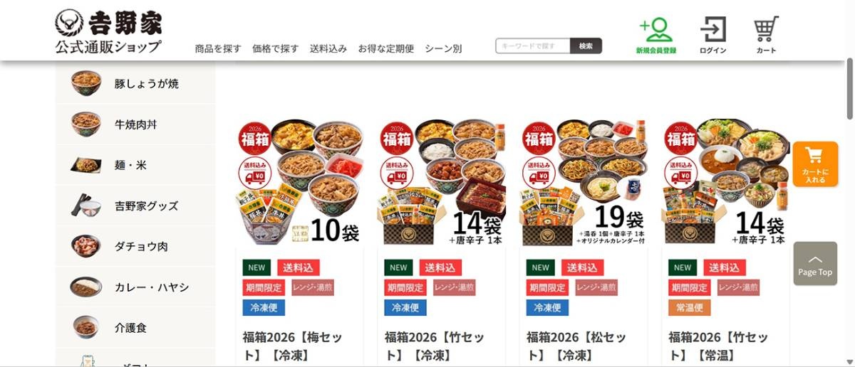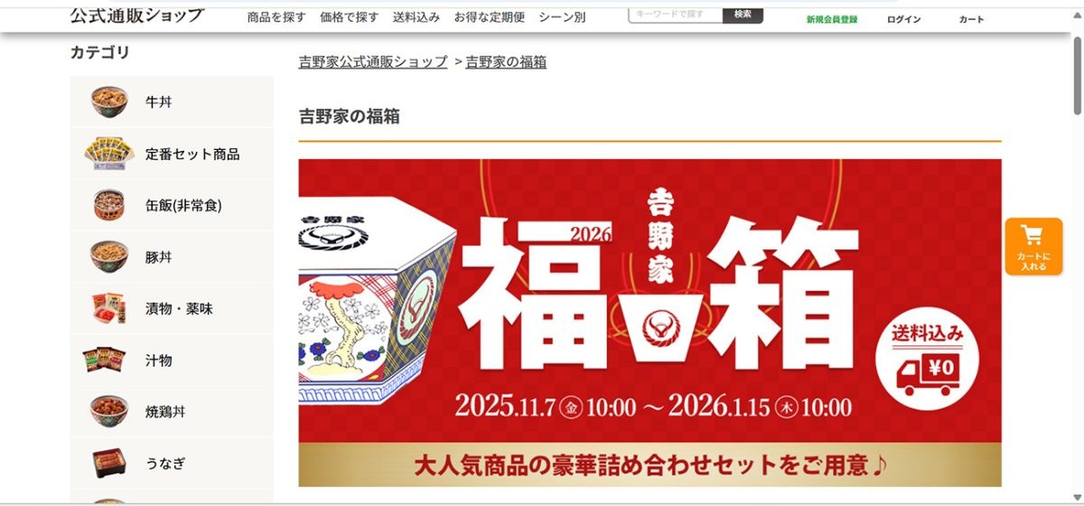 あれからオンラインになり、人気のためか新年を迎える前に販売されるようになった吉野家の福箱。2026年も福箱セット販売の時期である。そこで公式オンラインストアを見てみたところ衝撃を受けた。なんじゃこりゃあ……!