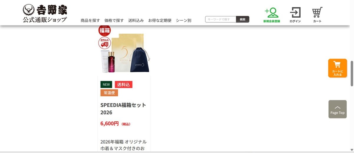 「SPEEDIA福箱セット2026(税込6600円)」だ。ページの説明を見たところ、どうやらスキンケアの福箱セットである模様。吉野家の福箱でスキンケアだと!? 謎すぎるので購入してみた。