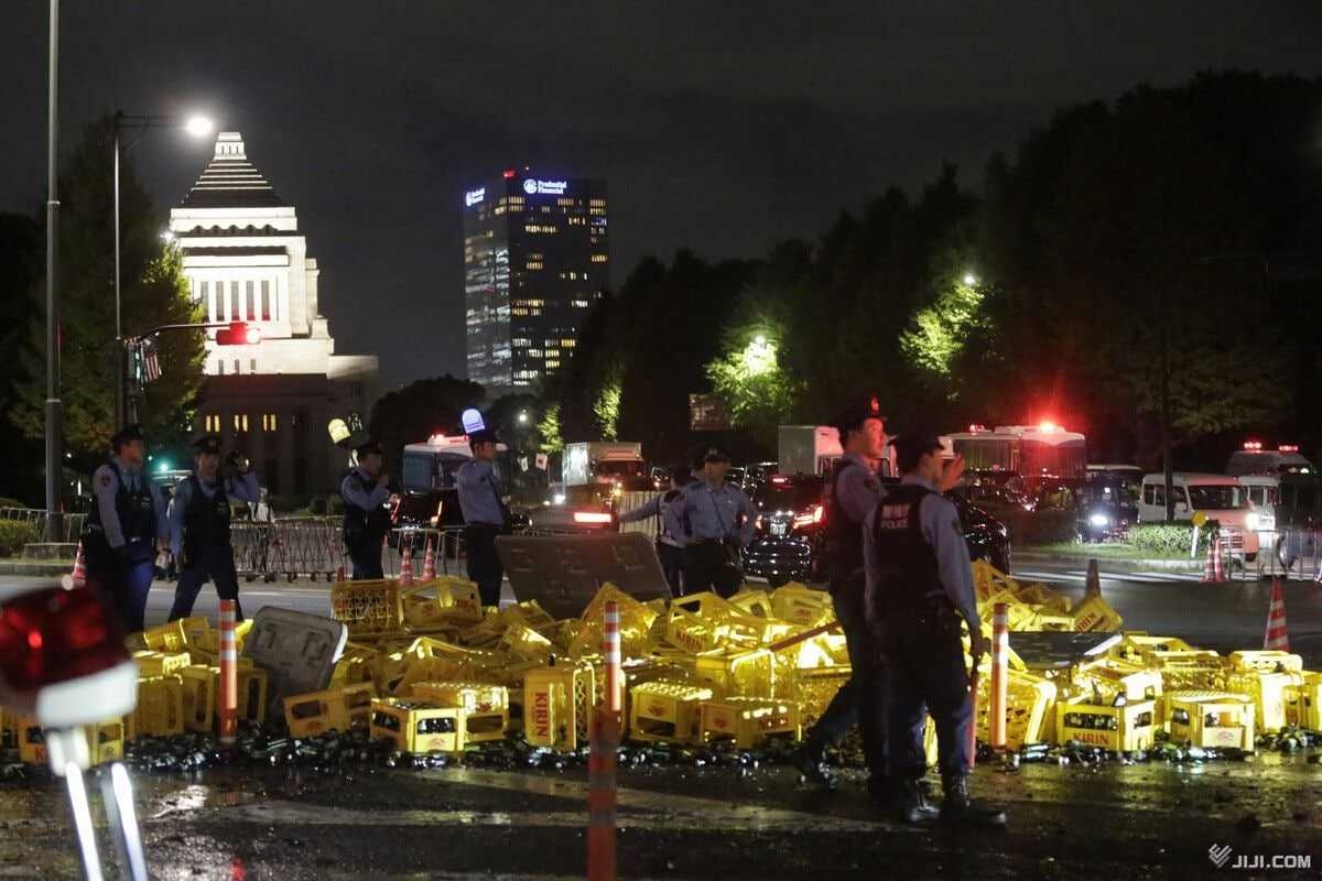国会前で大量のビール瓶散乱 荷崩れか、米大統領警戒中 警視庁(時事通信)