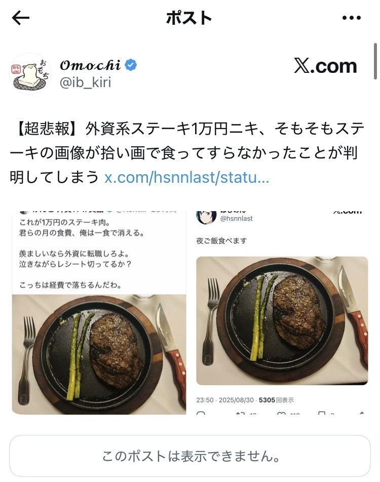 元の画像はちゃんとそれなりの値段のステーキハウスらしい