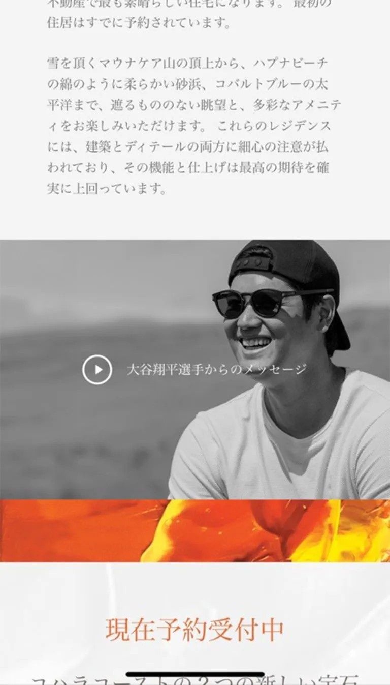 リゾートは大谷が購入者の第一号であることからか、販売会社は「営業」を本格化させる。自然豊かなハワイ島の映像とともに、大谷が〈パラダイスを見つけました。2つの完璧なビーチ2つの素晴らしいゴルフコース……〉〈ここは特別な場所。そして、もうすぐ我が家となる場所〉などと語る宣伝動画がHP上に大きく掲載された。