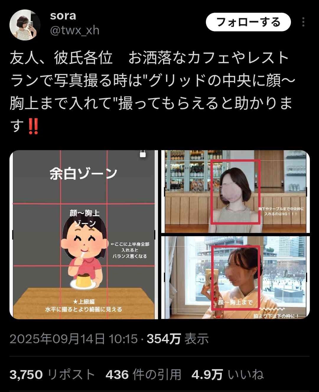 映える写真、おしゃれなカフェやらにおいては、日の丸構図こそが正義
