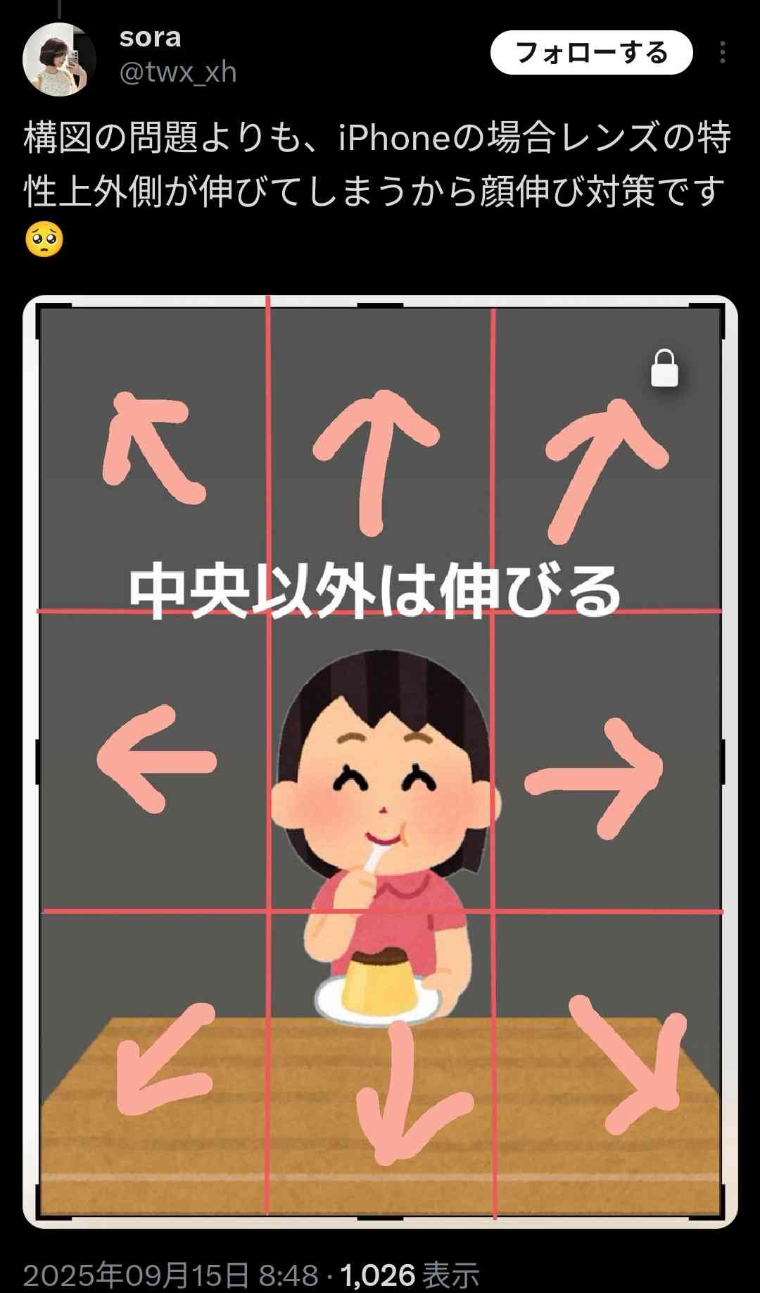 まさにコイツの言ってる広角レンズで顔面引き伸ばされる現象で起きるんだぞあれ