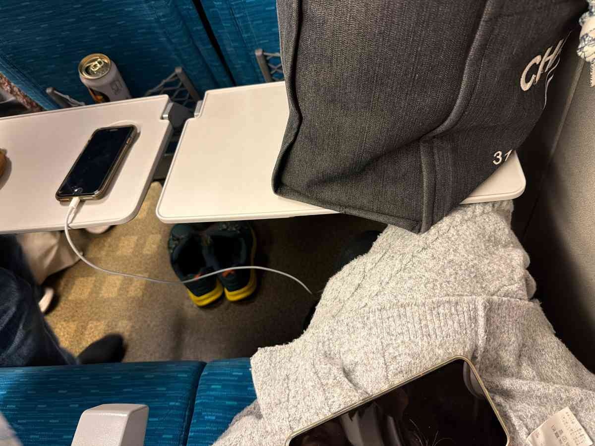 席跨いでコンセントはさすがにないわ