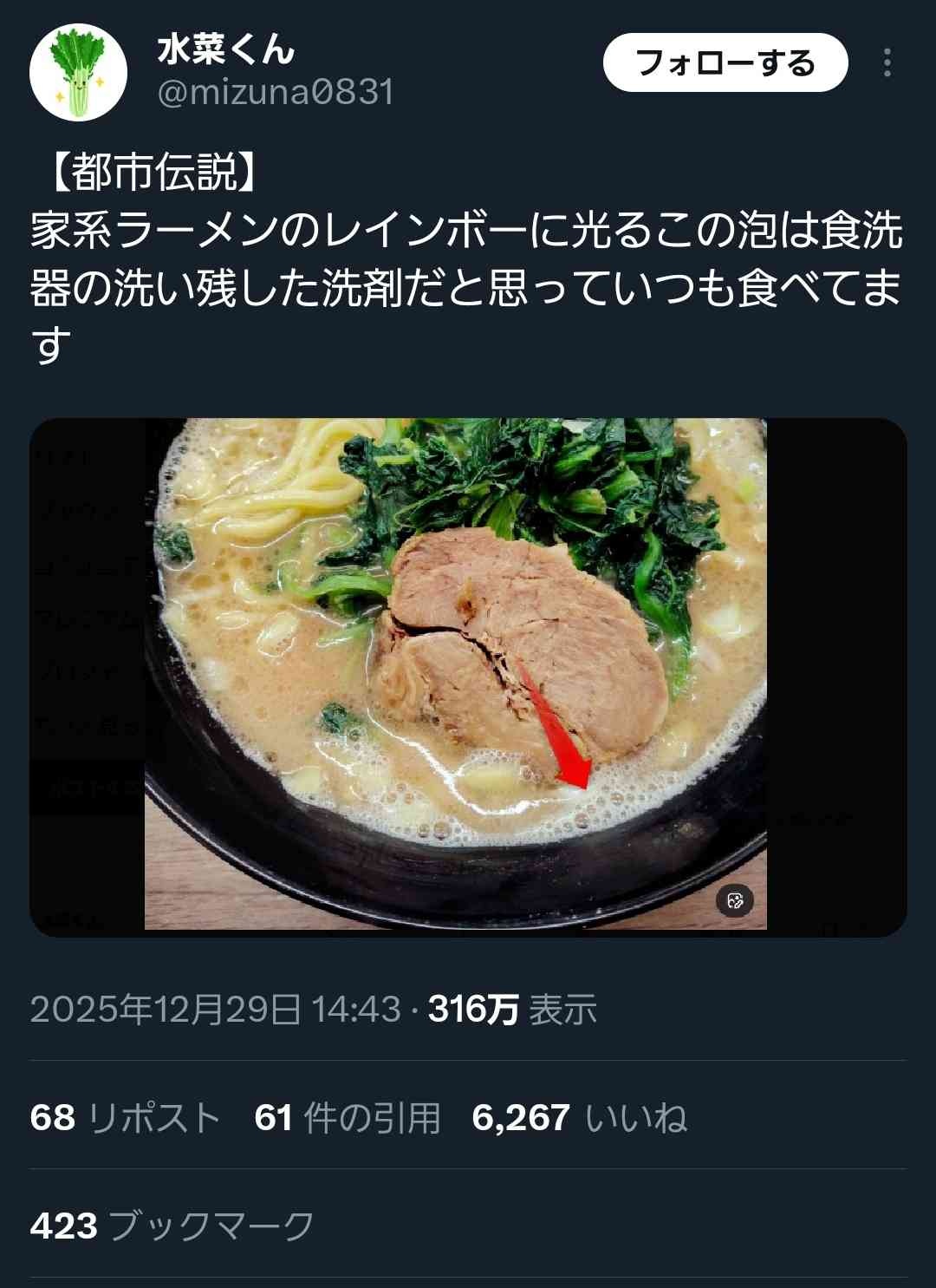 家系ラーメンさん、洗剤が容器に残り泡立ってしまう…