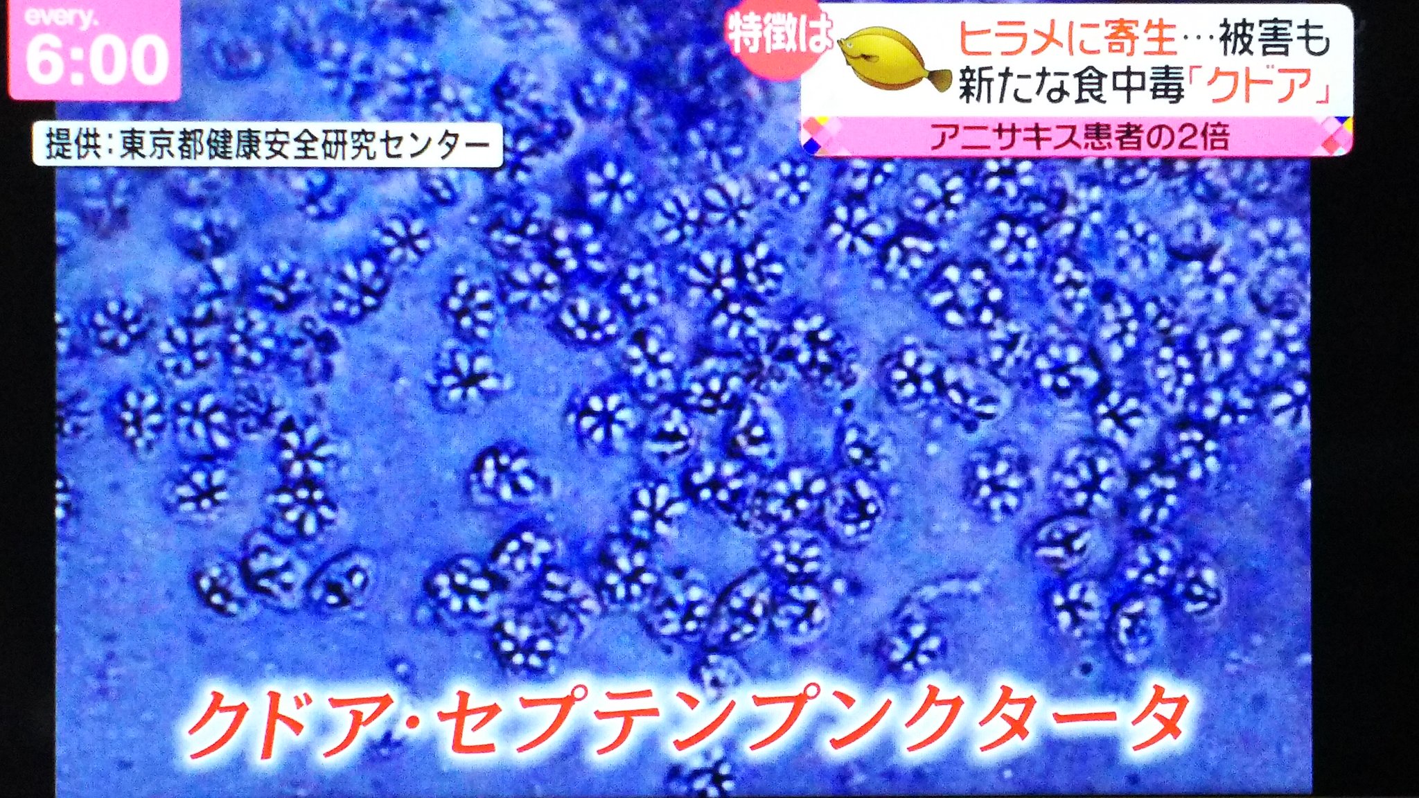 現在、原因物質については調査が進められていますが、患者の症状や食事の内容からヒラメに寄生する「クドア・セプテンプンクタータ」が疑われるということです。