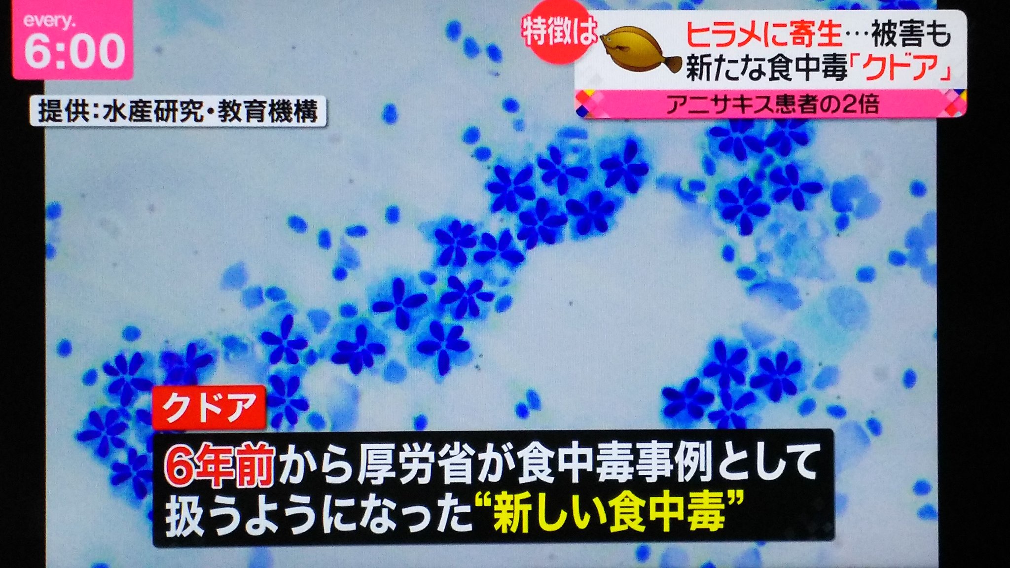 現在、原因物質については調査が進められていますが、患者の症状や食事の内容からヒラメに寄生する「クドア・セプテンプンクタータ」が疑われるということです。