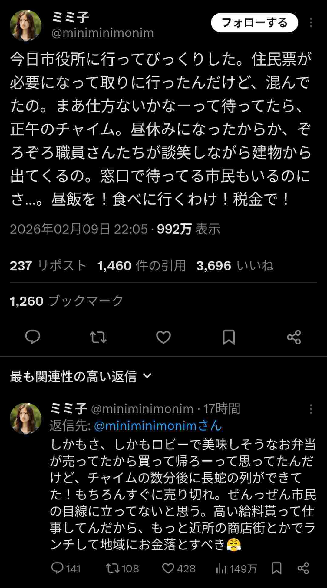 公務員だけは12時きっかり昼休憩に入って土日はしっかり休むって意味わかんねえな…